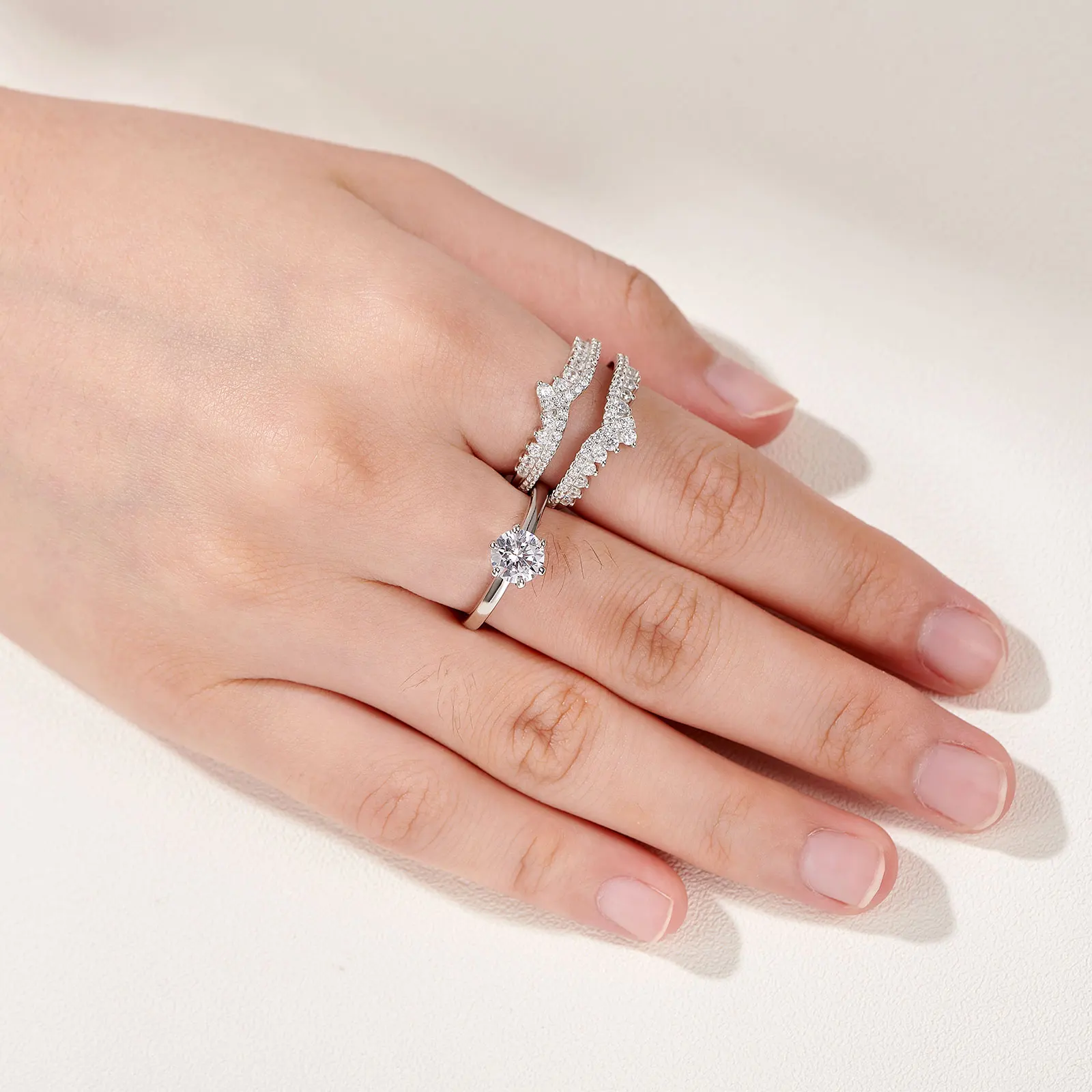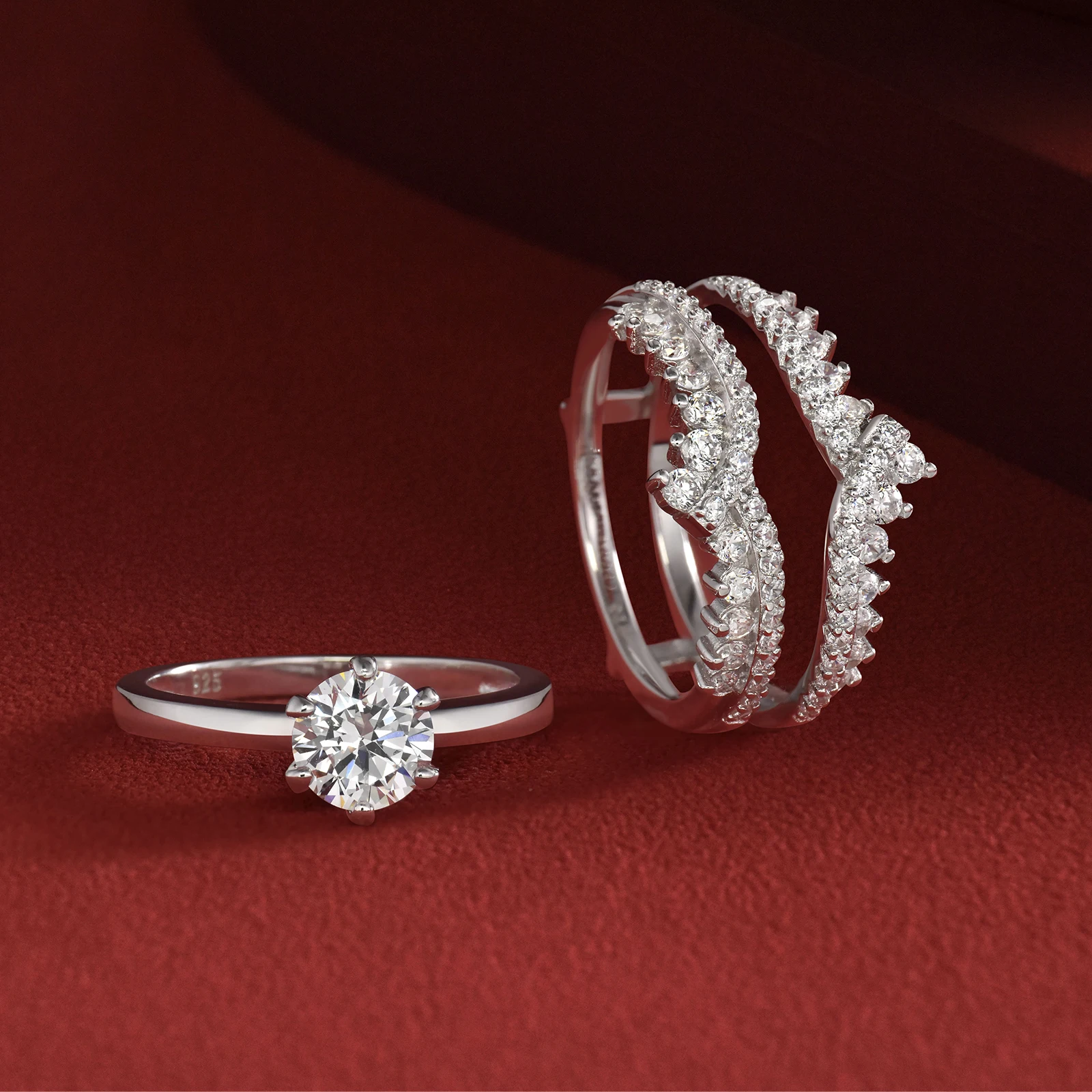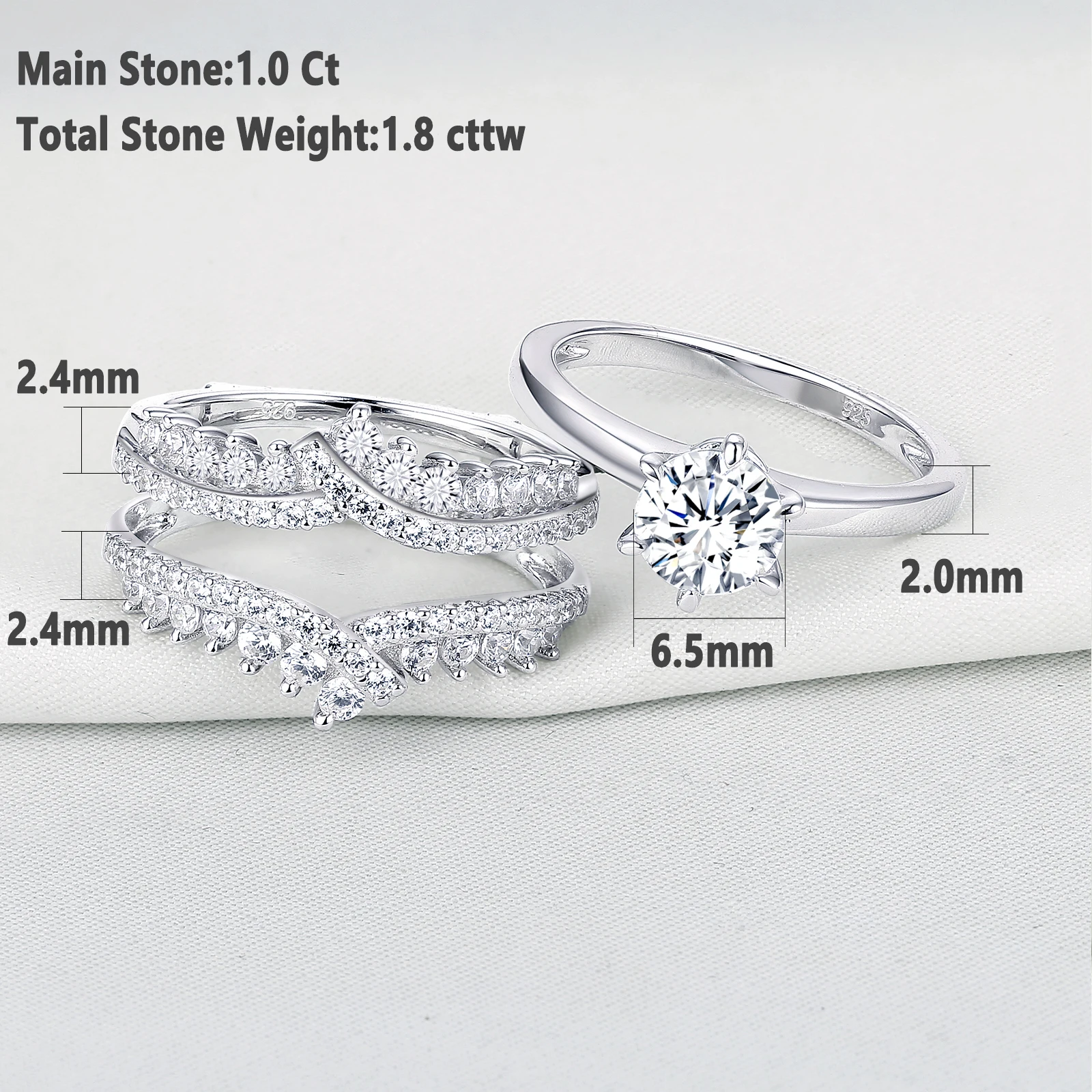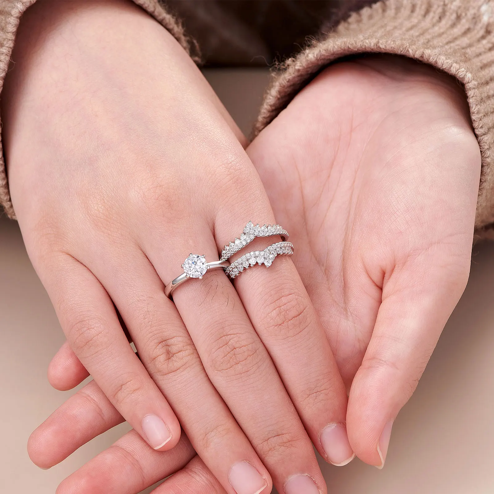 Fleepmart Wedding Rings for Women Engagement Ring Enhancer Band Bridal Set 925 Silver 1.8Ct Cz Fine Jewelry