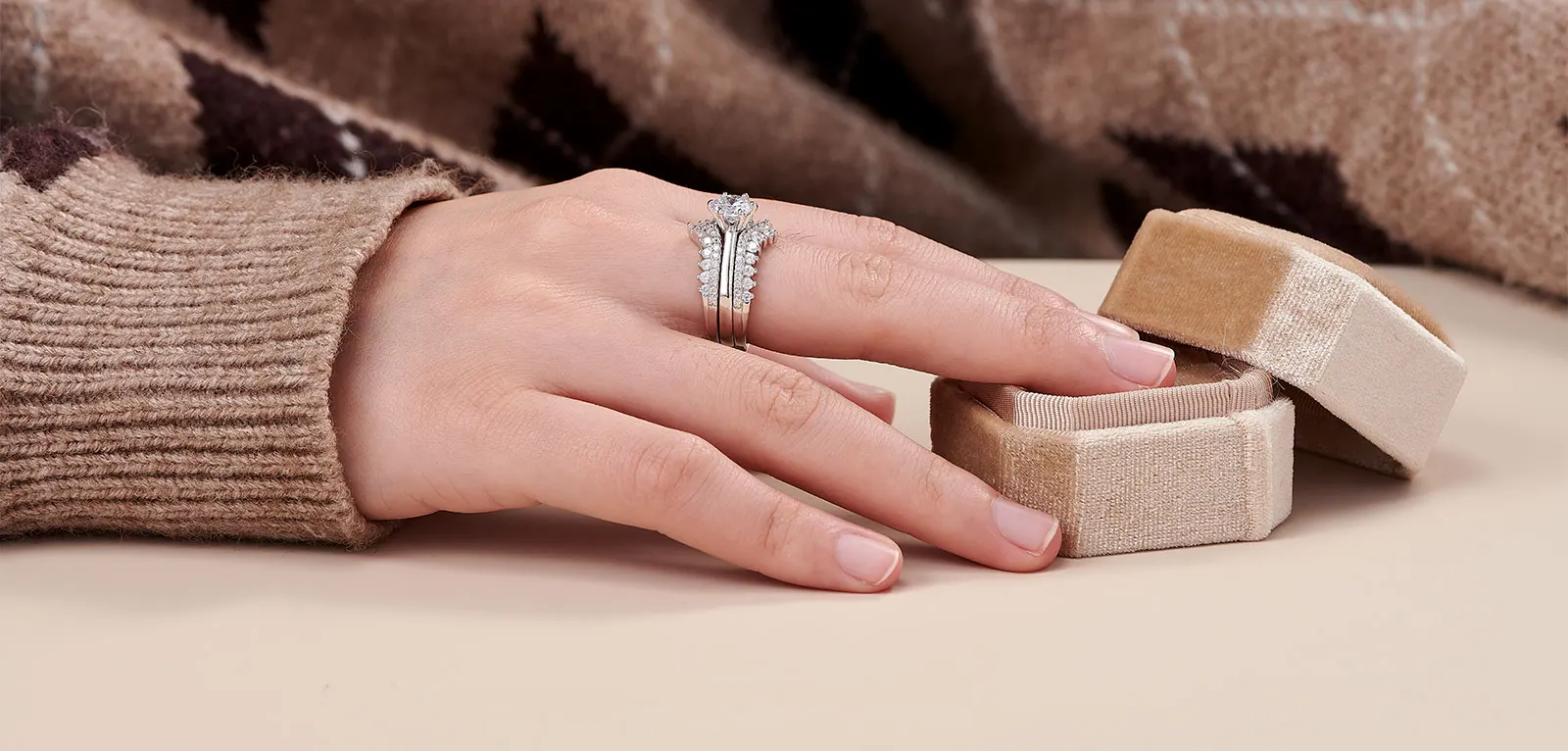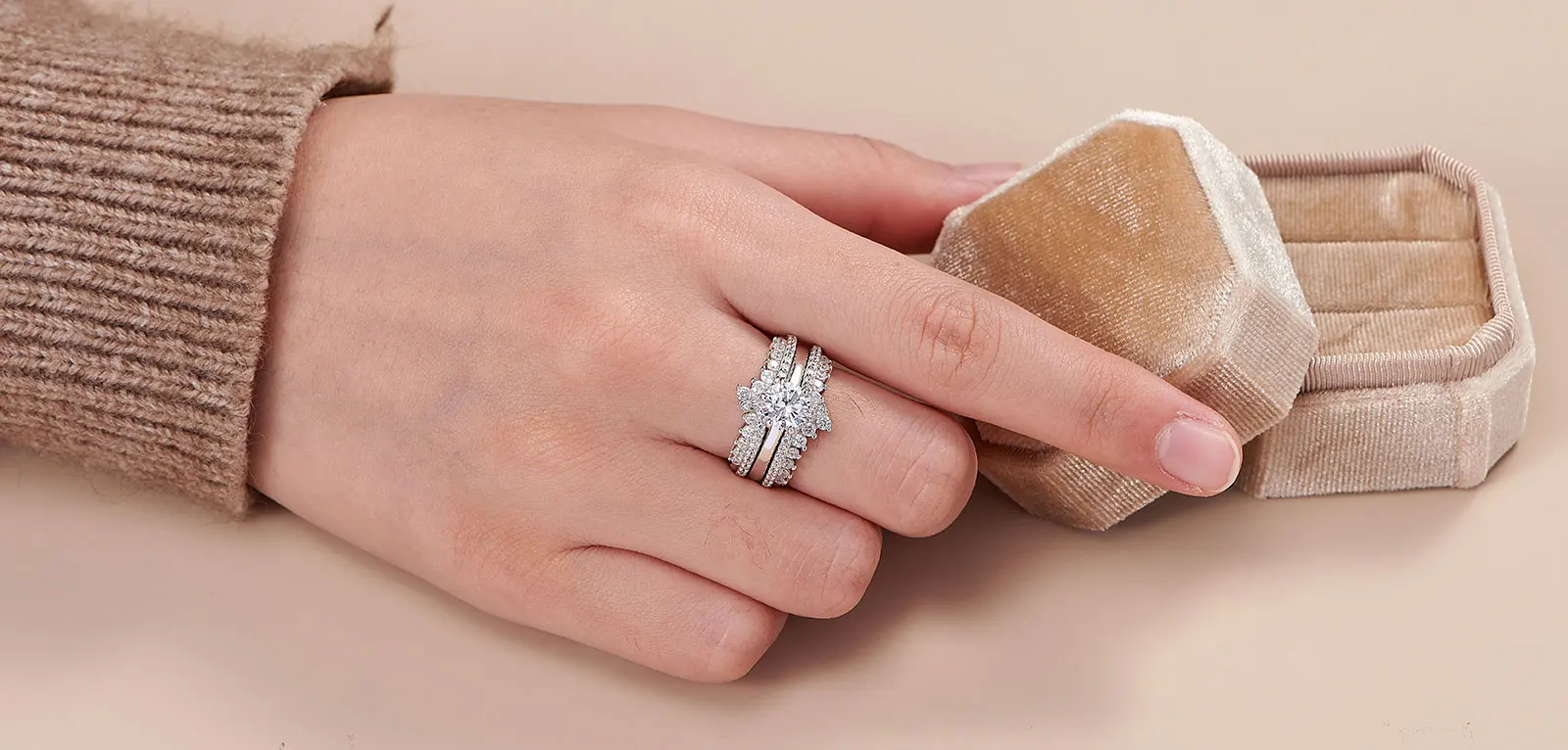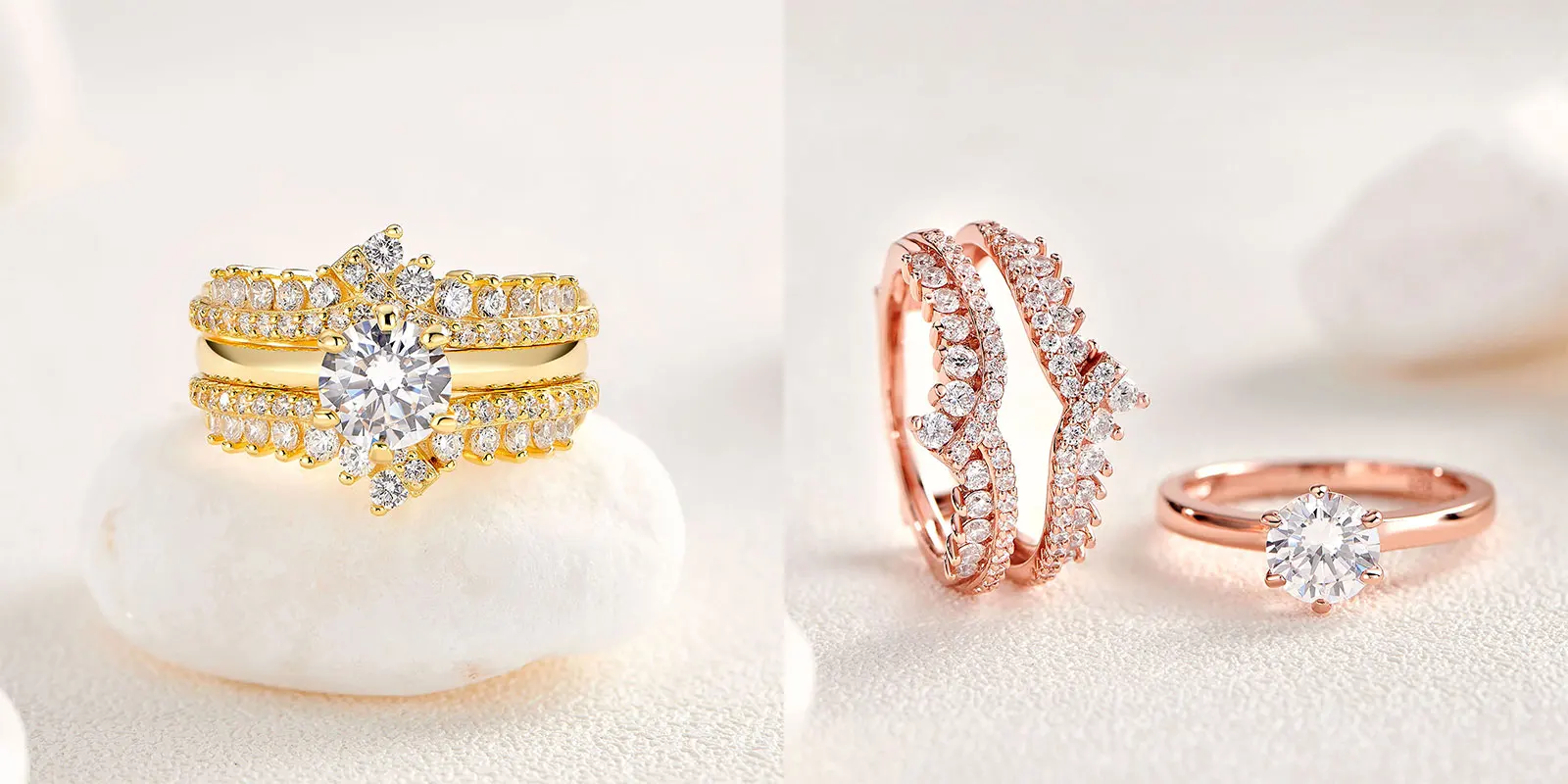 All the stones on the ring and the ring enhancer are AAAAA grade Cubic Zirconia stone. Which makes the rings super stunning when wearing it together