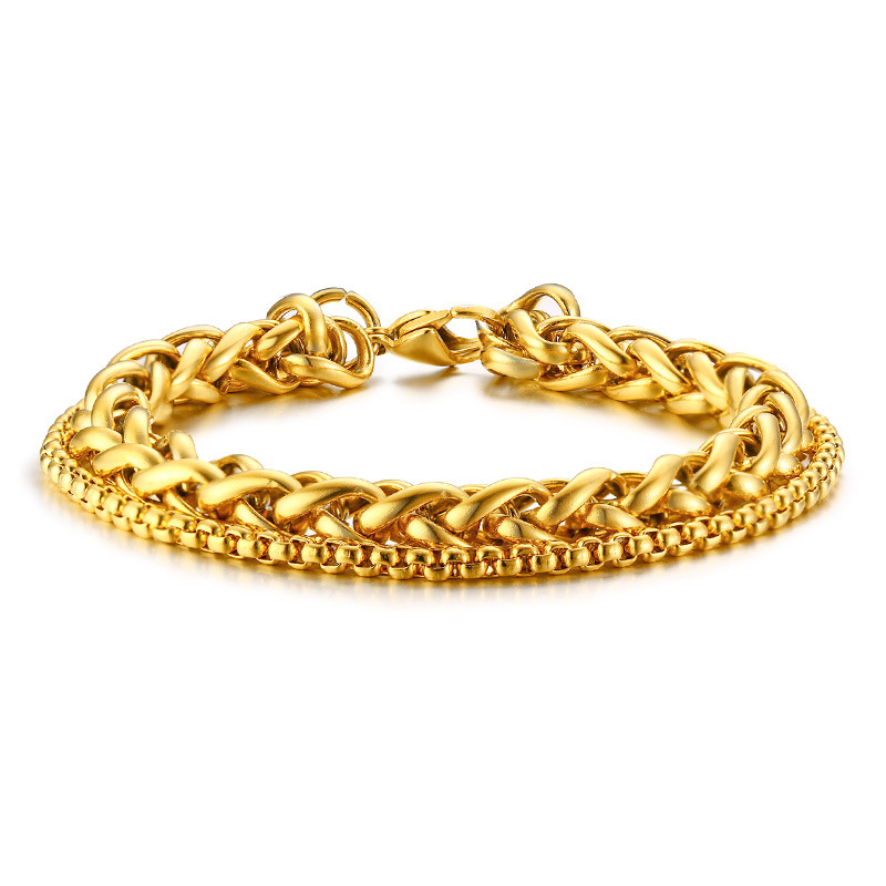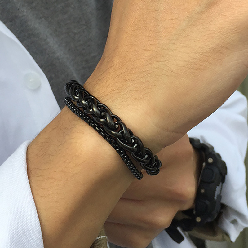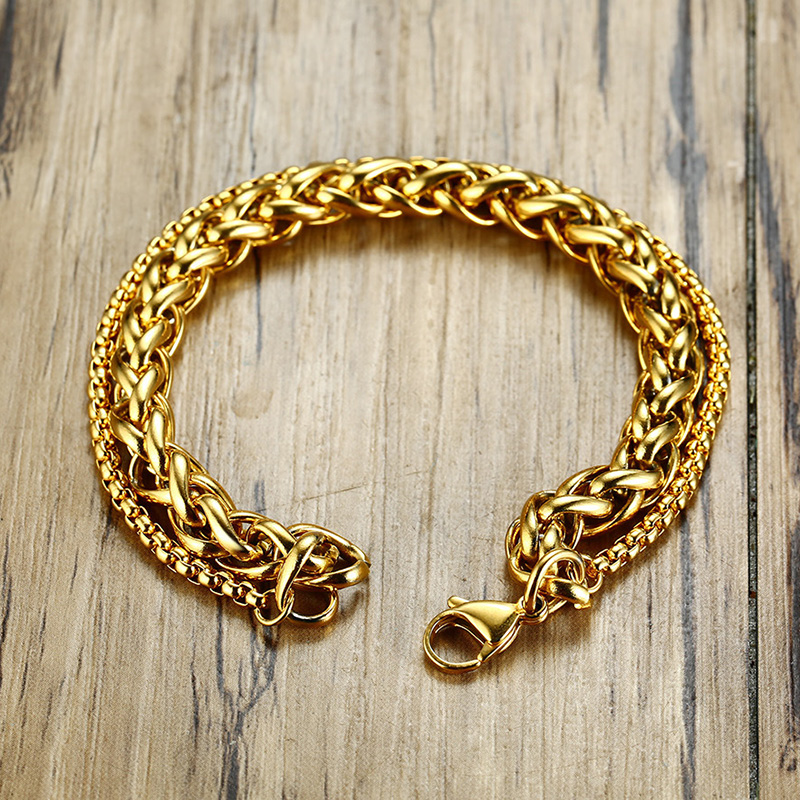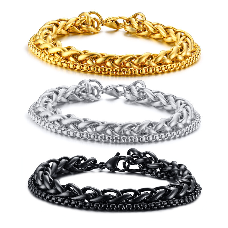 Fleepmart Wheat Chain Bracelet for Men Double Link Stainless Steel Wristands Male Accessories