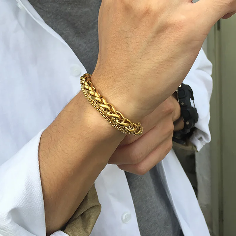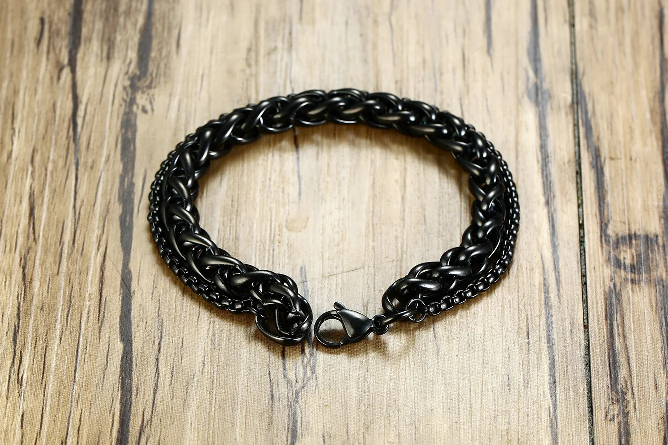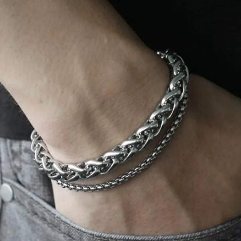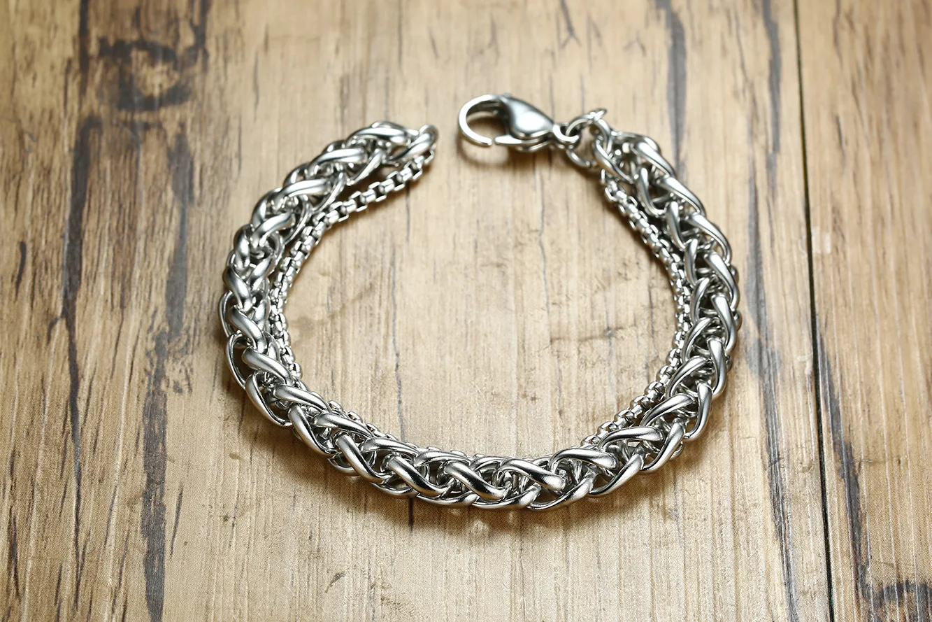 Fleepmart Wheat Chain Bracelet for Men Double Link Stainless Steel Wristands Male Accessories