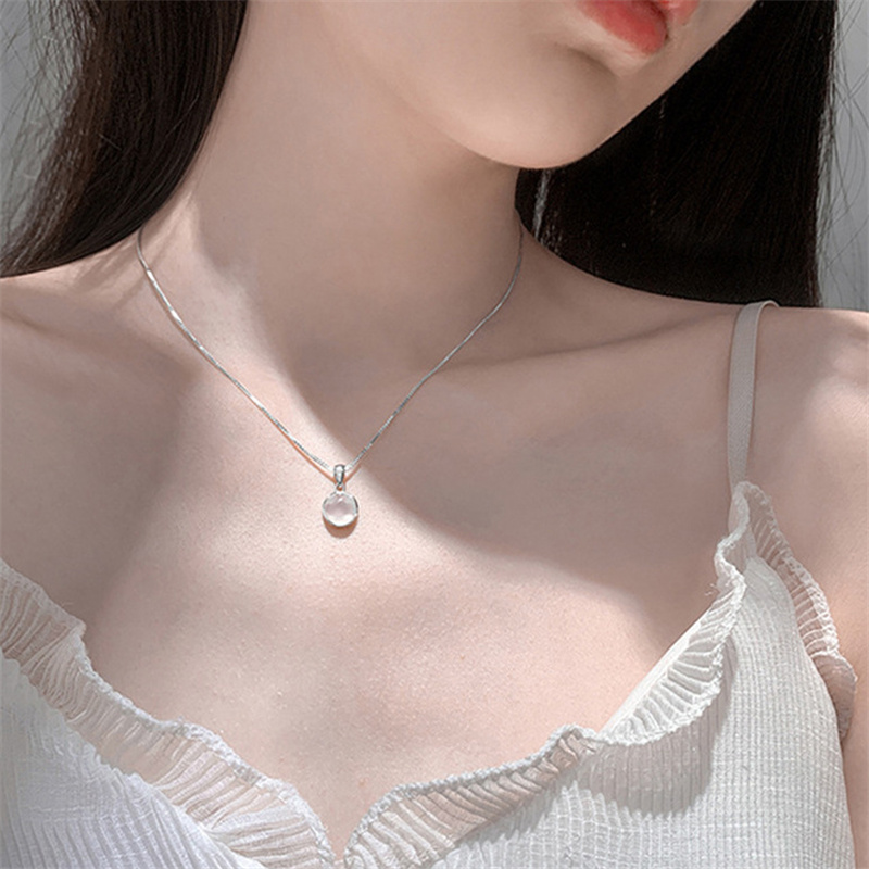 Fleepmart White Chalcedony Round Pendant Necklace Vintage Alloy Clavicle Chain Women Jewelry Party Gift