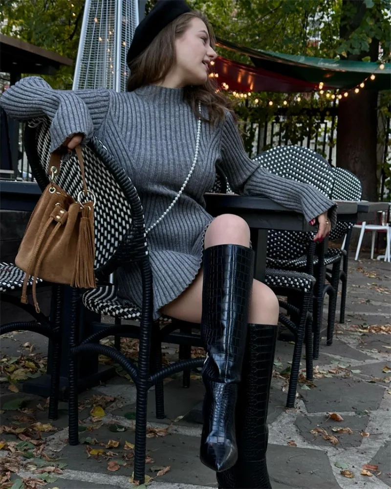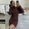 Fleepmart White Knitted Women Mini Autumn O Neck Long Sleeve Short Dress Elegant Office Lady Streetwear