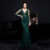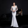 Fleepmart White Long Dress V-neck Appliques Full Sleeve Evening Dress See through Elegant Wedding Dress