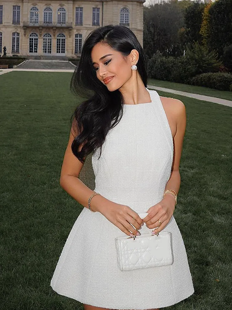 Fleepmart White Open Back Zipper Halter Dress Women Elegant Slim Fit Short 2025 New Party Street Short Dress