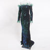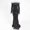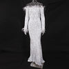 Fleepmart White Sequined Feather Slash Neck Maxi Dress Patchwork Stretch Shiny Long Sleeve Floor Length Bodycon Evening Party Dress