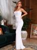 Fleepmart White Sexy Tube Top Sequins Fishtail Bodycon Wedding Maxi Dress