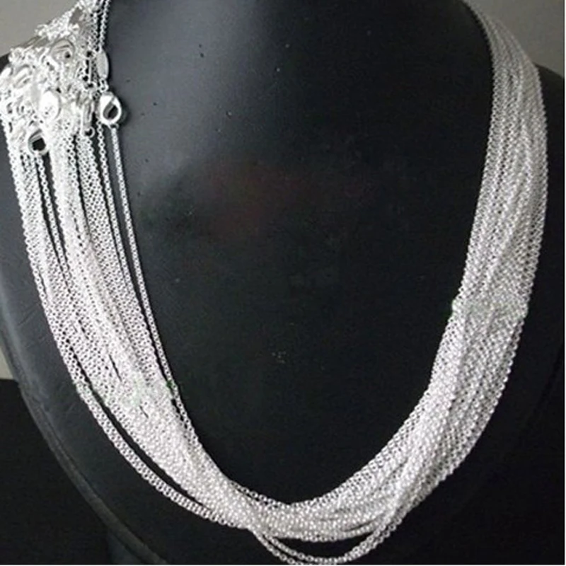 Fleepmart wholesale 5pcs/lot 925 Sterling Silver Chain necklace,Fashion Men/Women DIY Jewelry Rolo Chain 1mm Necklace 16 18 20 22 24″