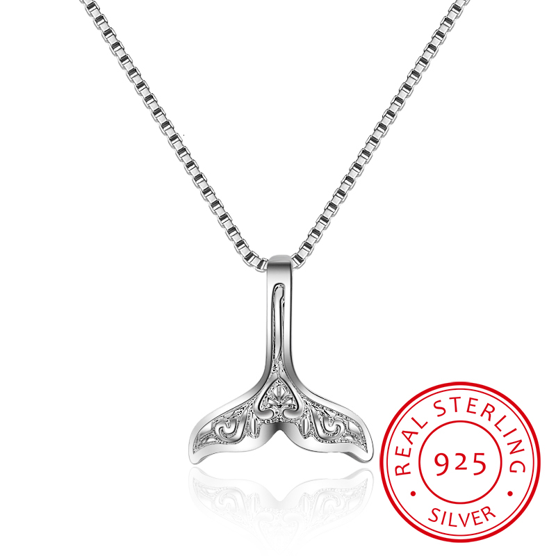Fleepmart Wholesale Wedding Jewelry 925 Sterling Silver Whale Tail Fish Nautical Charm Mermaid Tail Silver Necklace Women Neckalces