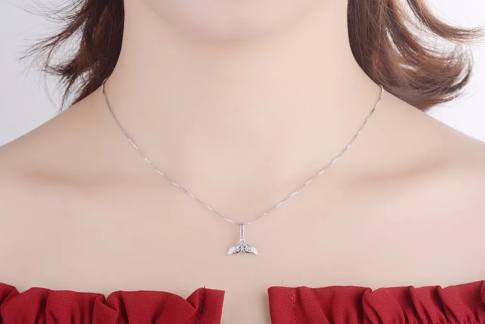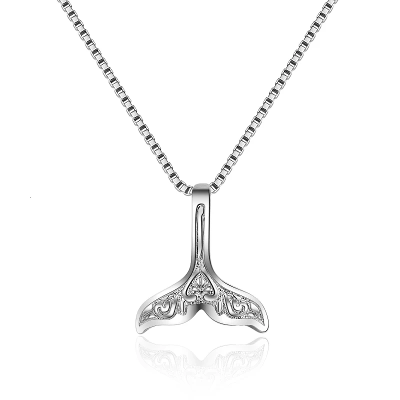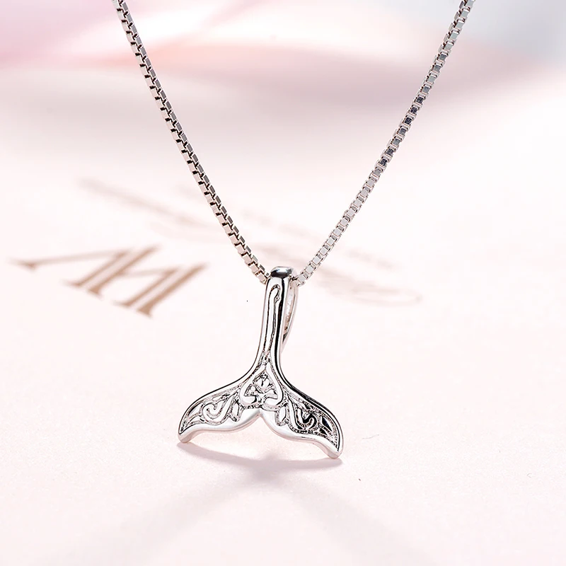 Fleepmart Wholesale Wedding Jewelry 925 Sterling Silver Whale Tail Fish Nautical Charm Mermaid Tail Silver Necklace Women Neckalces
