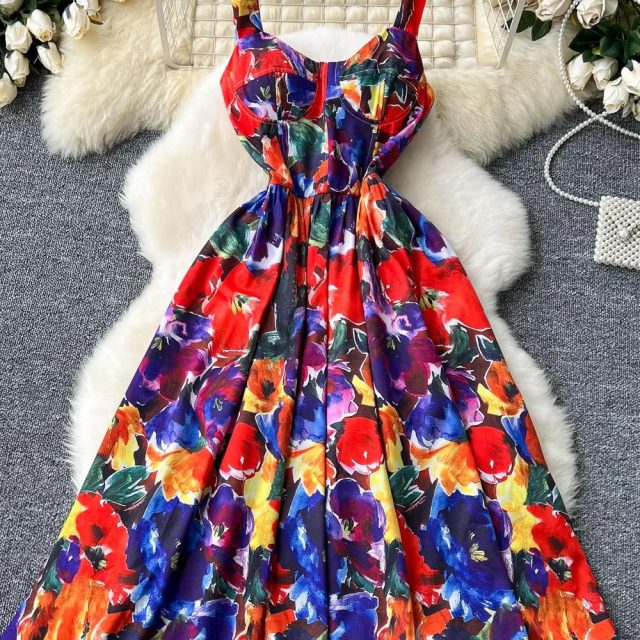 Fleepmart Woman Floral Print Mini Y2K Streetwear Casual Strapless Backless Slim Beach Holiday Dress