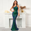 fleepmart Women 2022 New Design Slash Neck Party Maxi Dress One Shoulder Sequin Evening Dress Long Prom Dress