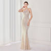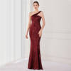 Fleepmart Women 2022 New Design Slash Neck Party Maxi Dress One Shoulder Sequin Evening Dress Long Prom Dress