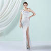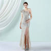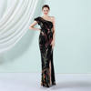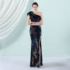 Fleepmart Women 2022 New Elegant One Shoulder Floor Length Evening Dress Sexy Hight Slit Sequin Flower Party Maxi Dress Vestidos
