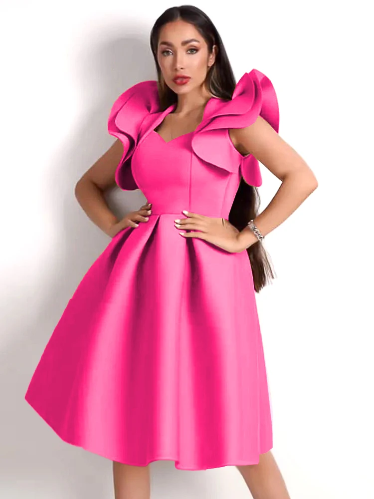 fleepmart Women A Line Party Dresses Sweetheart Flying Sleeve Flowy Swing Dress Formal Birthday Wedding Guest Celebrate Plus Size Gowns