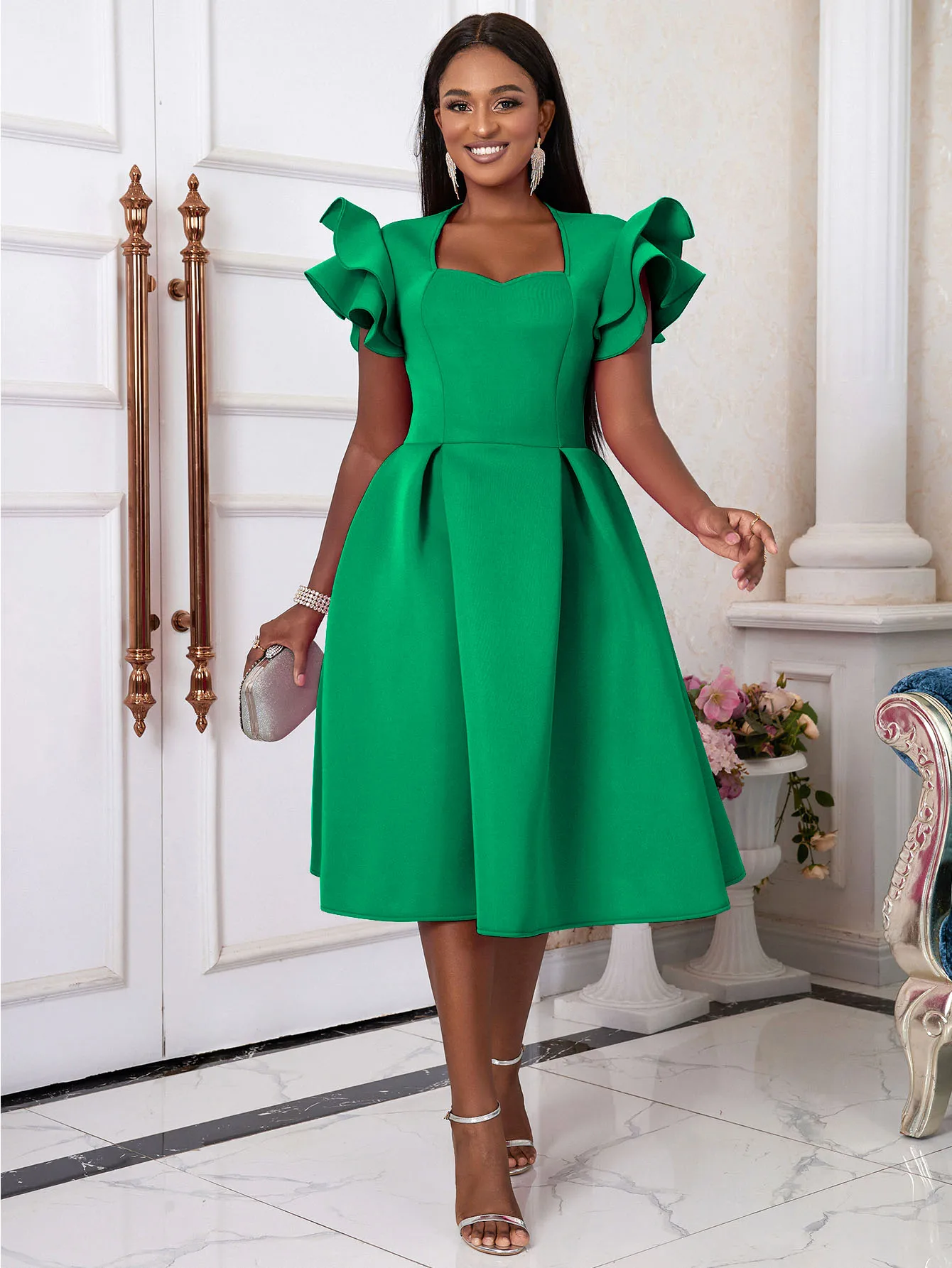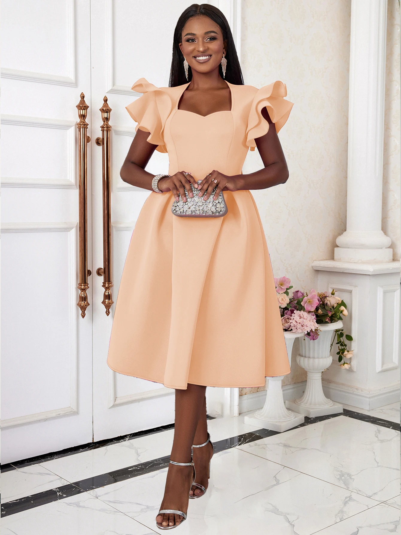 fleepmart Women A Line Party Dresses Sweetheart Flying Sleeve Flowy Swing Dress Formal Birthday Wedding Guest Celebrate Plus Size Gowns
