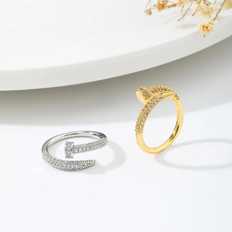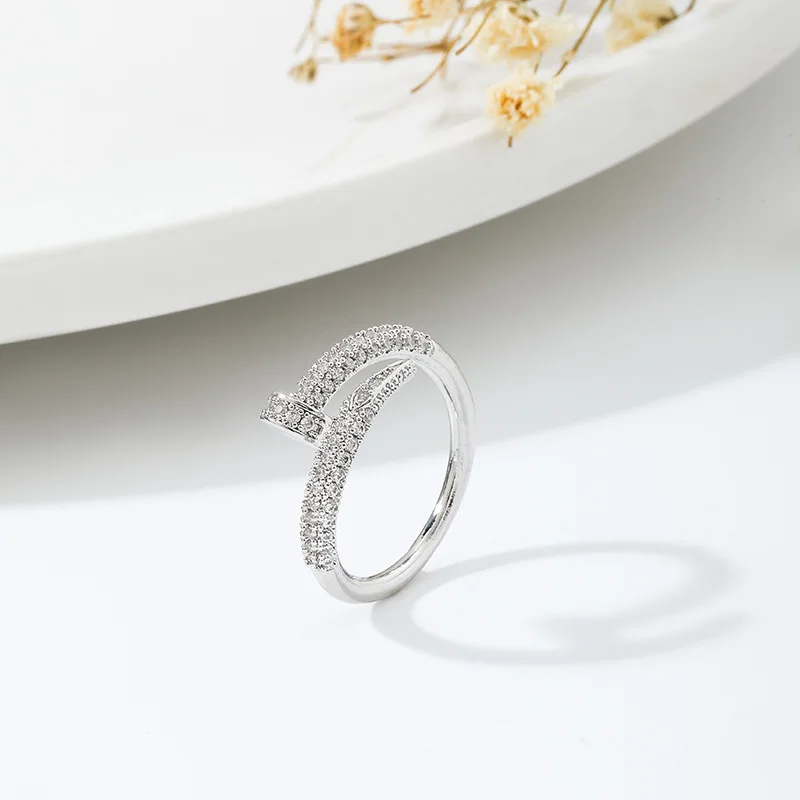 Fleepmart Women Adjustable Nail Ring Korean Fashion Punk Cubic Zirconia Ring Daily Simple Jewelry