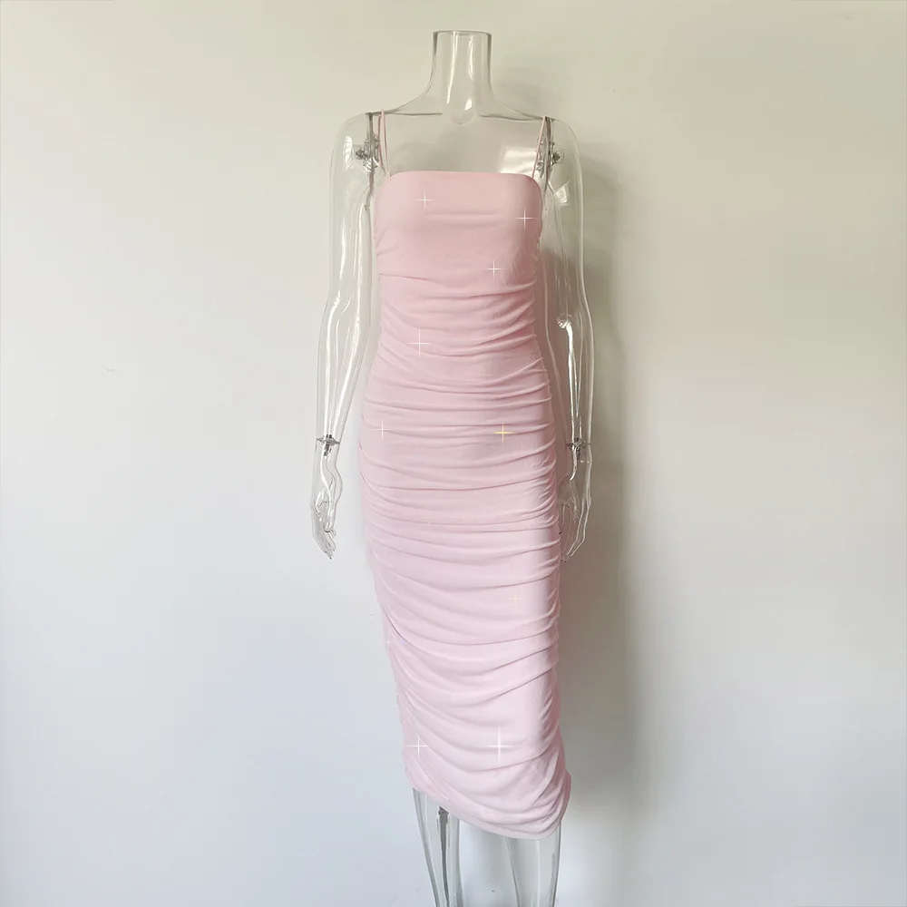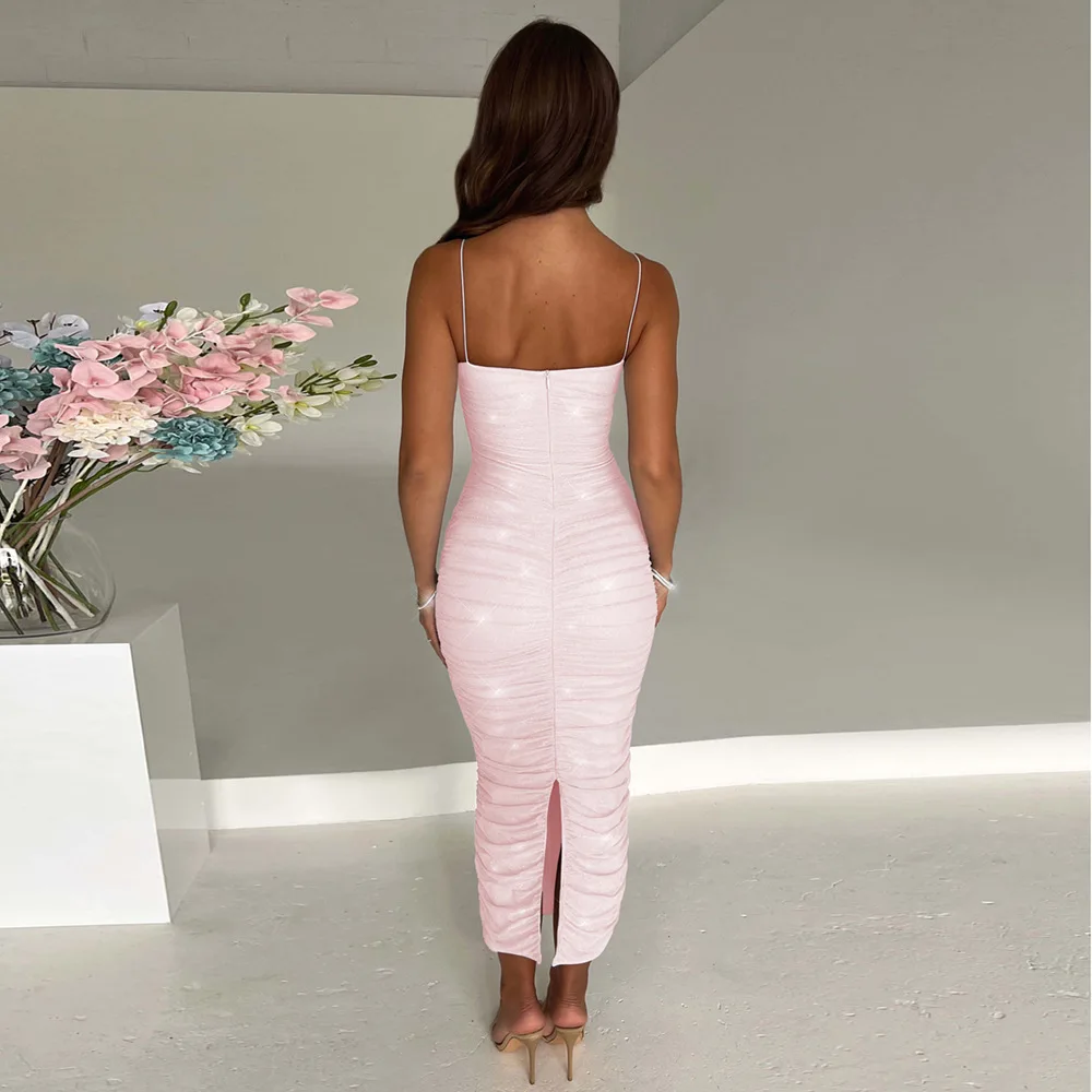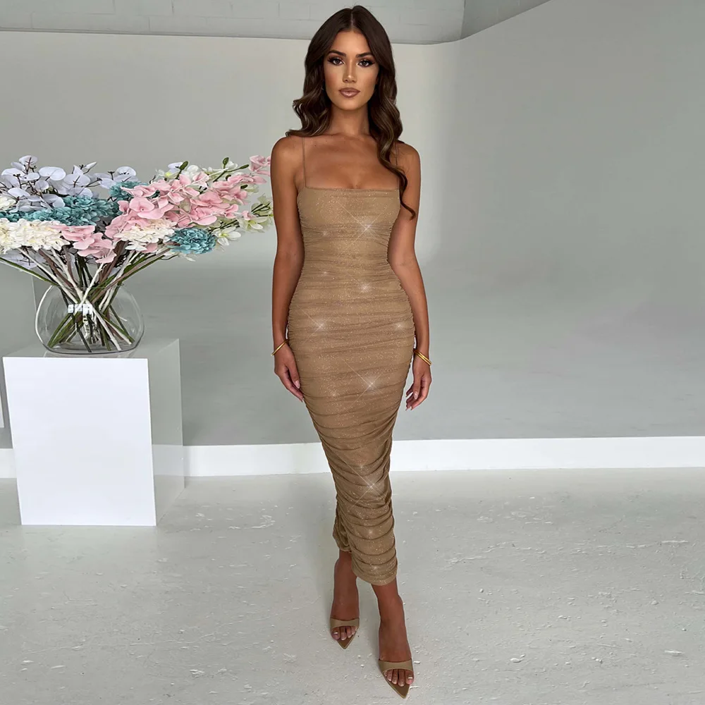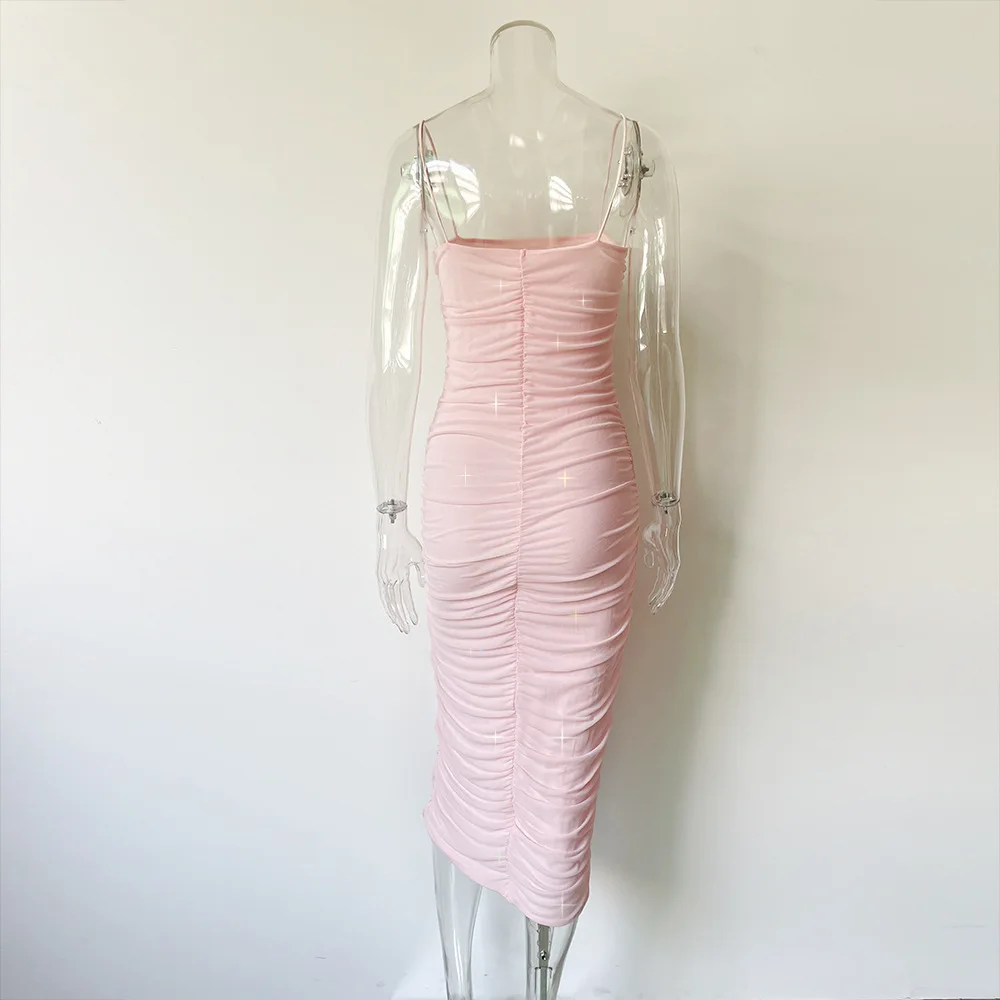 Fleepmart Women Autumn Mesh Dress Spaghetti Strap Sexy Bodycon Dress Backless Party Night Club Sleeveless Patchwork Robe