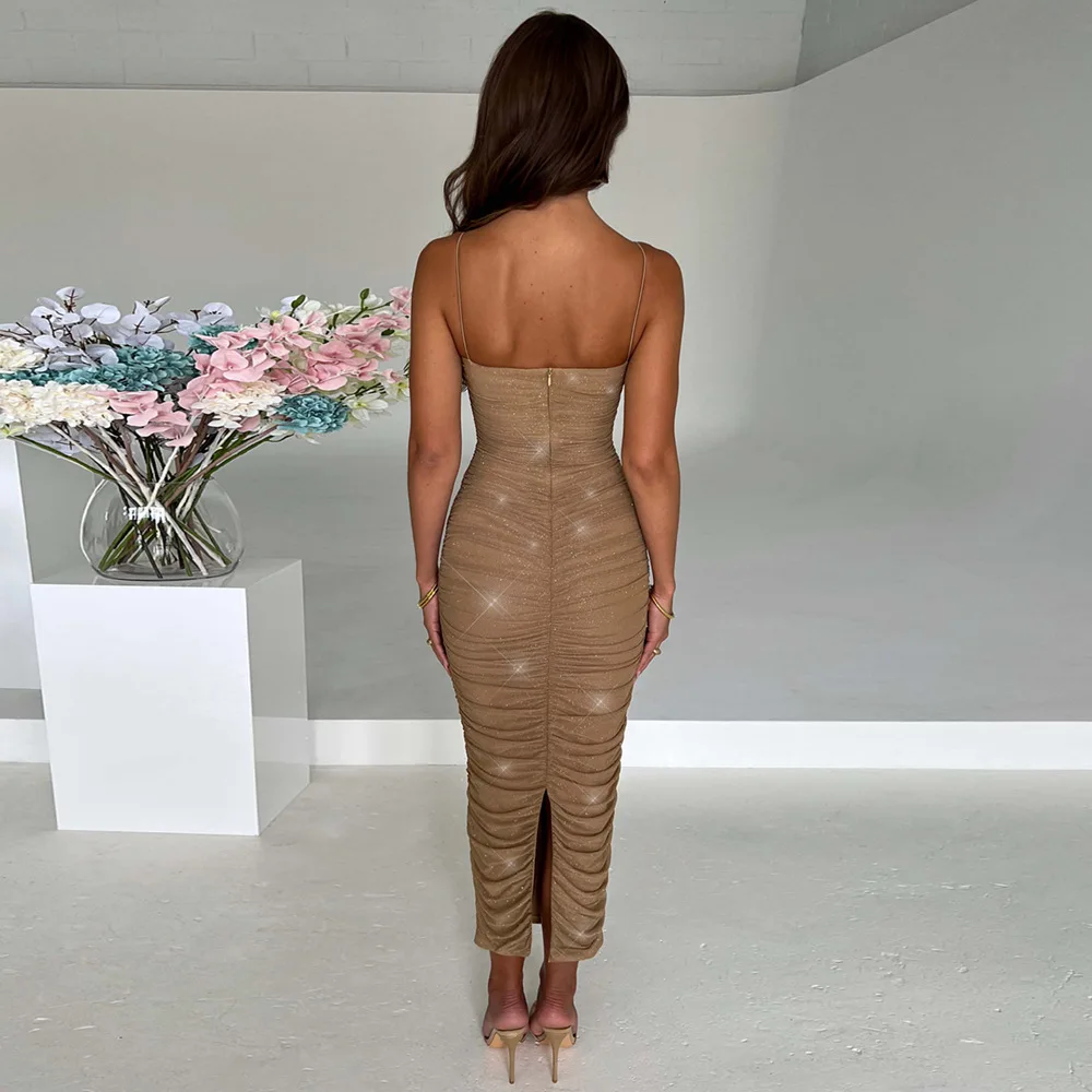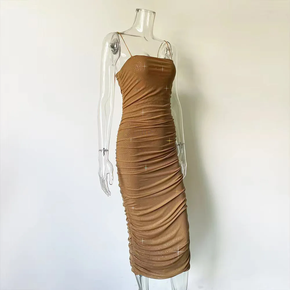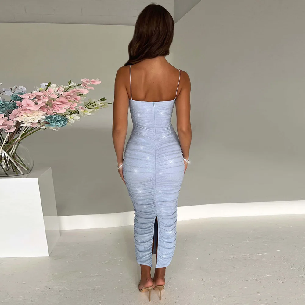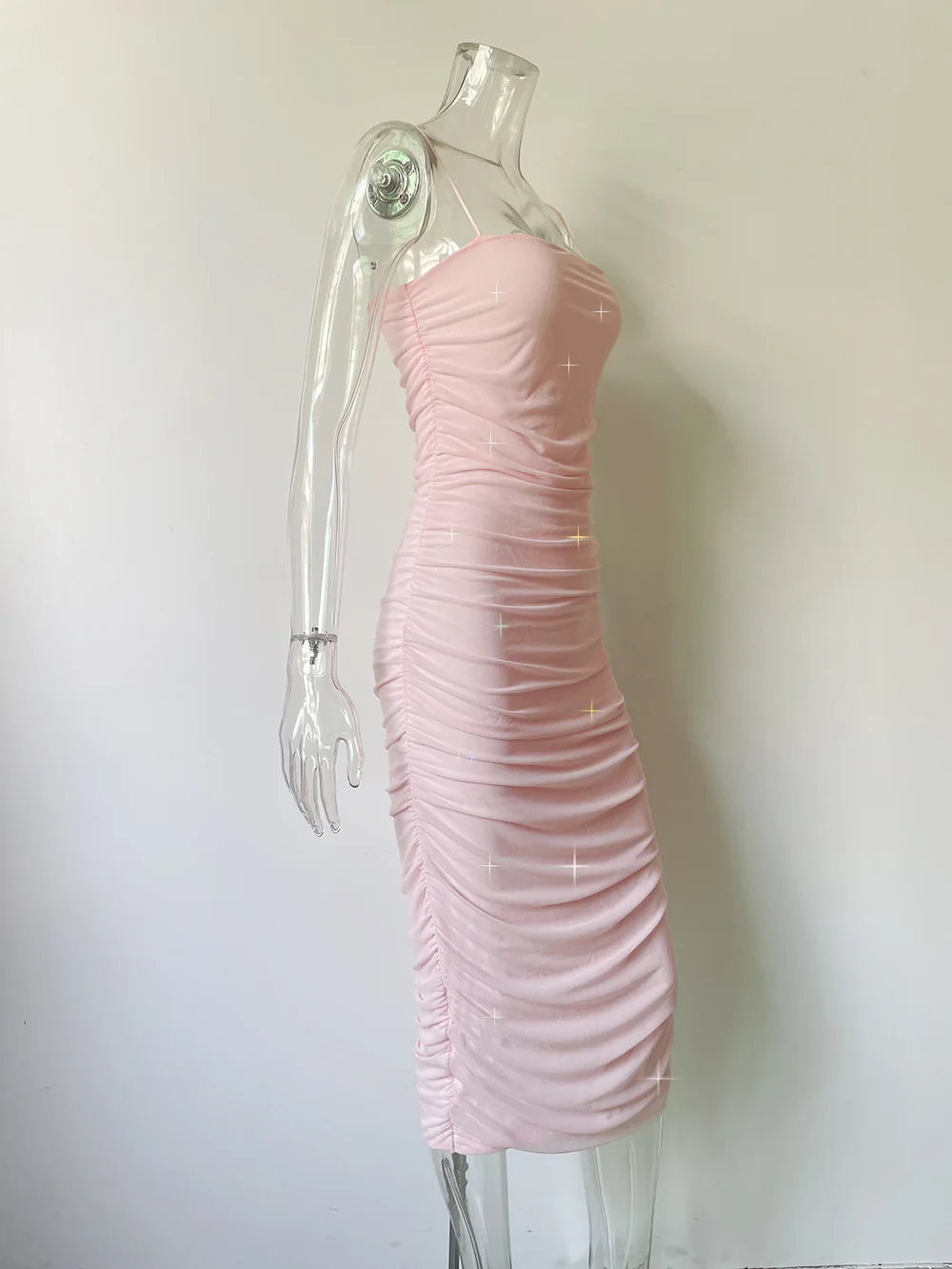 Fleepmart Women Autumn Mesh Dress Spaghetti Strap Sexy Bodycon Dress Backless Party Night Club Sleeveless Patchwork Robe