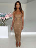 Fleepmart Women Autumn Mesh Dress Spaghetti Strap Sexy Bodycon Dress Backless Party Night Club Sleeveless Patchwork Robe
