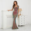 Fleepmart Women Beading Dress Long Evening Dress Sexy V Neck Sequin Prom Dress Party Maxi Dress