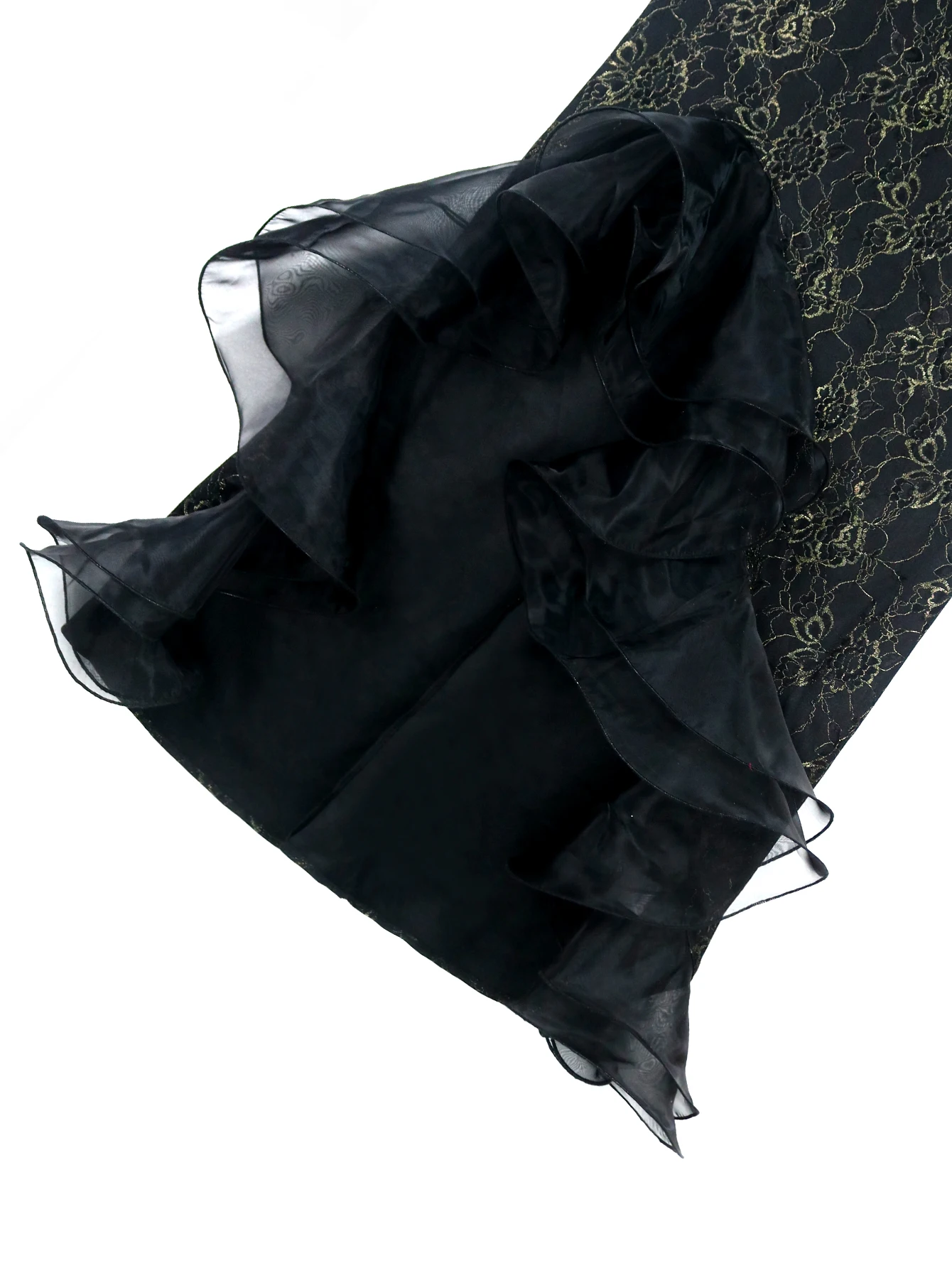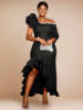 Fleepmart Women Black Lace Dress One Shoulder Skew Collar 3D Flower Ruffles Irregular Slit Sexy Slim Party Event Occasion Gowns