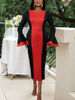 Fleepmart Women Black Midi Dresses Sheath O Neck Long Flare Sleeve Church Patchwork Bodycon Evening Dinner Party Event Gowns Autumn 2024