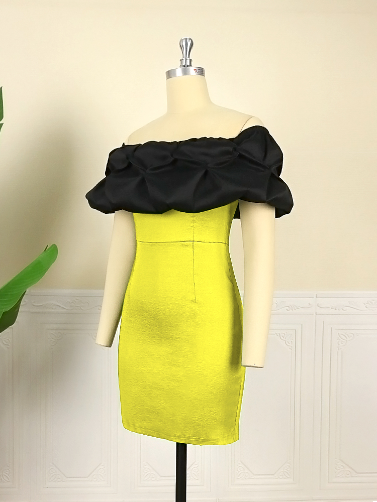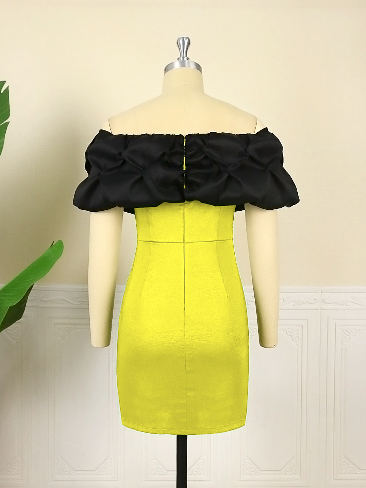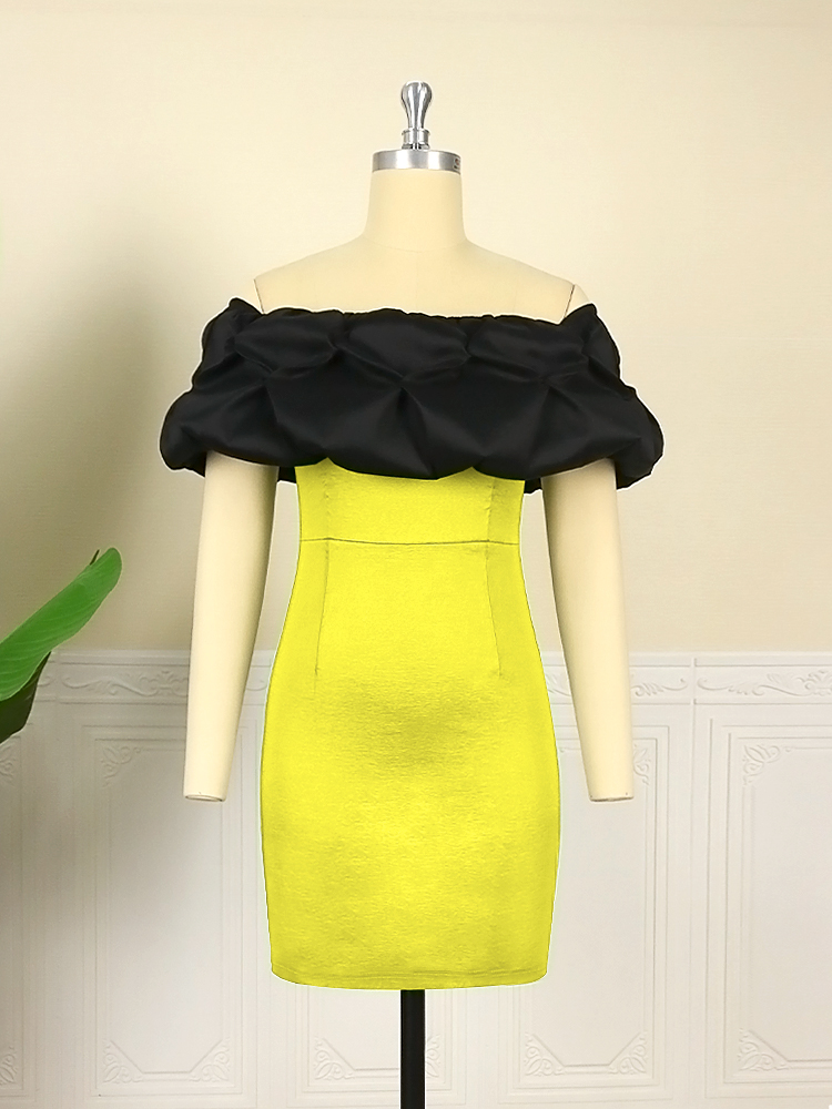 Fleepmart Women Bodycon Mini Dresses Off Shoulder Sexy Sheath Party Black Yellow Spring Evening Elegant Fashion Slim Pencil Gown 2022 New