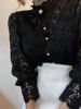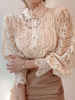 Fleepmart Women Chiffon Button Turtleneck Shirt Chic Elegant Floral Lace Fluffy Long Sleeve Top Fashion Hollow Oversize White Blouse 2024