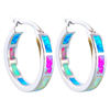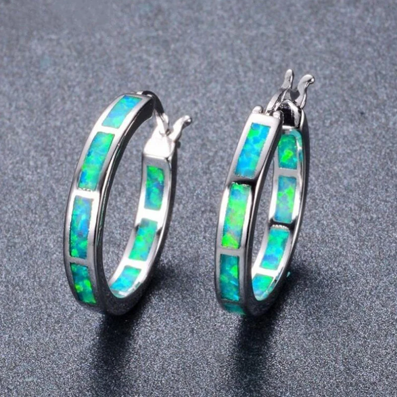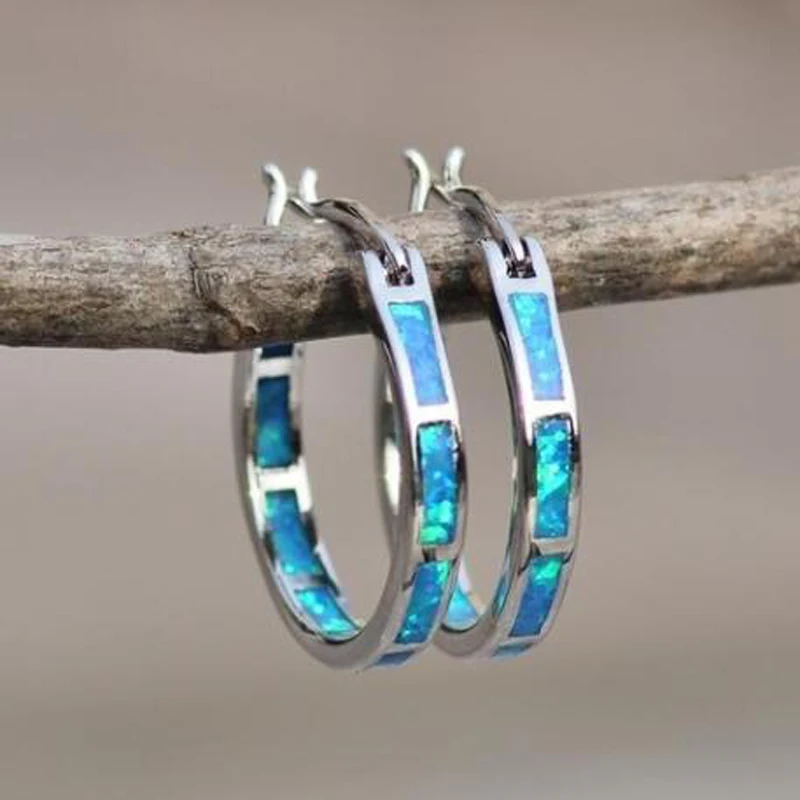 Fleepmart Women Classic Wedding Fashion Jewelry Blue Fire Opal S925 Hoop Earrings 1 Pair