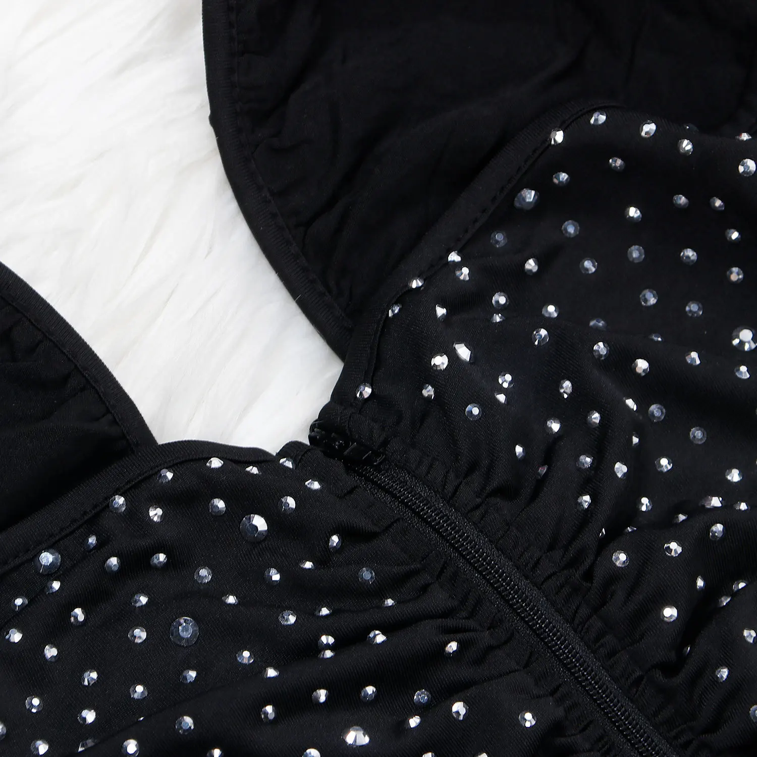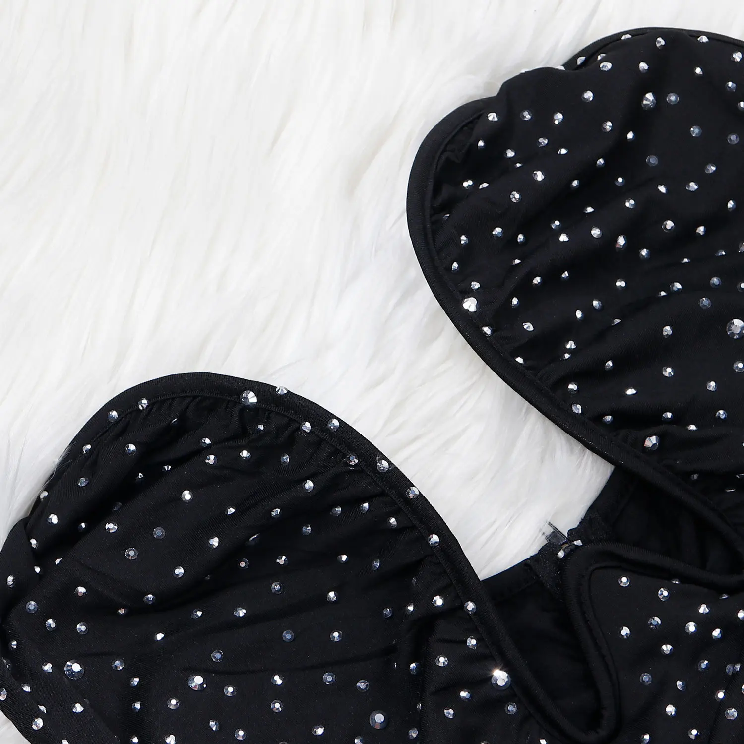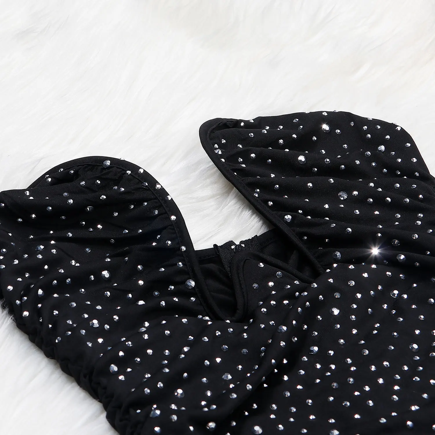 Fleepmart Women Diamonds Crystal Patchwork Mini Dress2024 Summer Sexy Strapless Backless V Neck Evening Party Club Dresses Outfit Vestidos