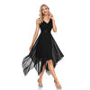 Fleepmart Women Double V-Neck A-Line Lace Chiffon Evening Dress Floral Lace Bridesmaid Dress Ribbon Waistline Irregular Design Sleeveless