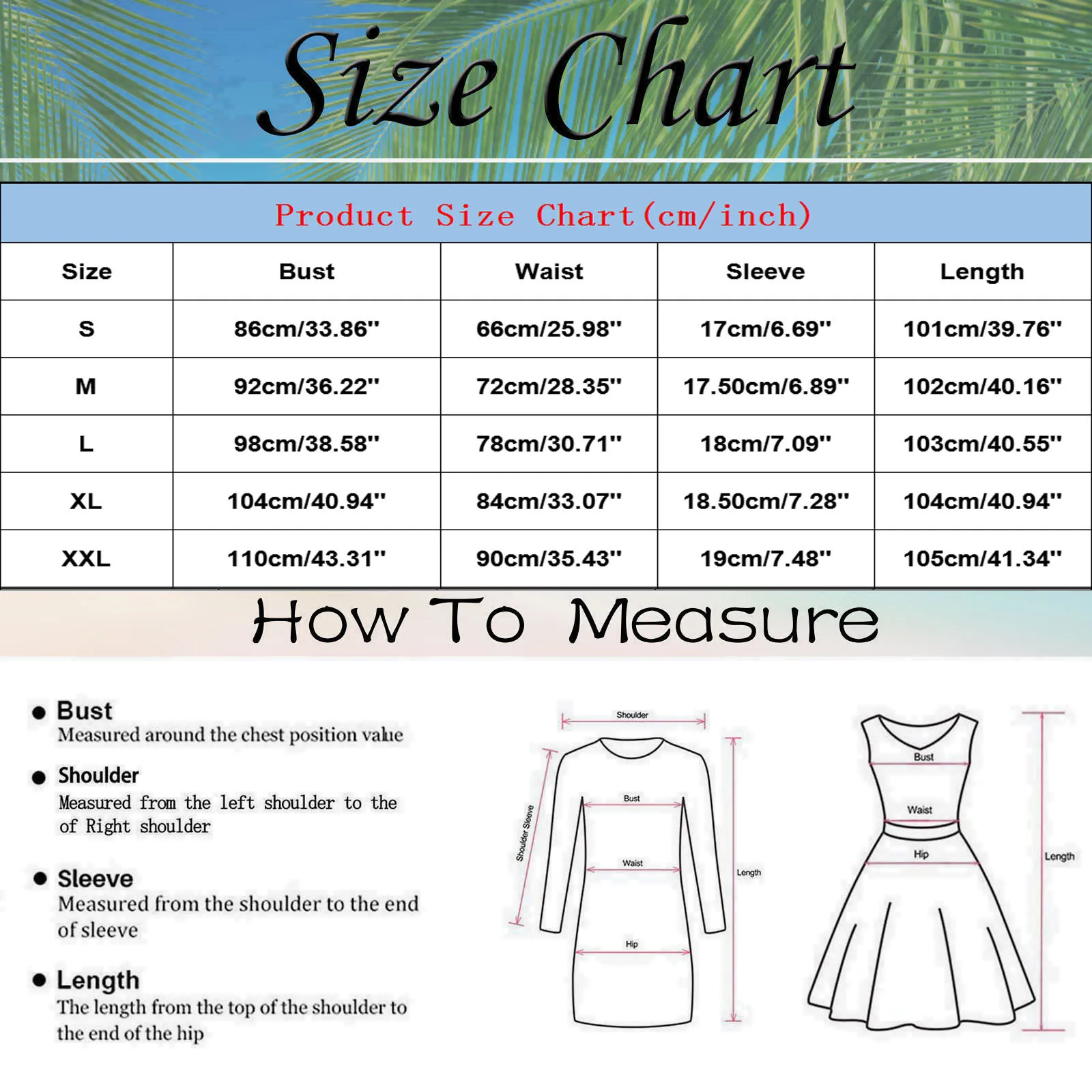 Size:S Bust:86cm/33.86” Waist:66cm/25.98” Sleeve:17cm/6.69” Length:101cm/39.76”