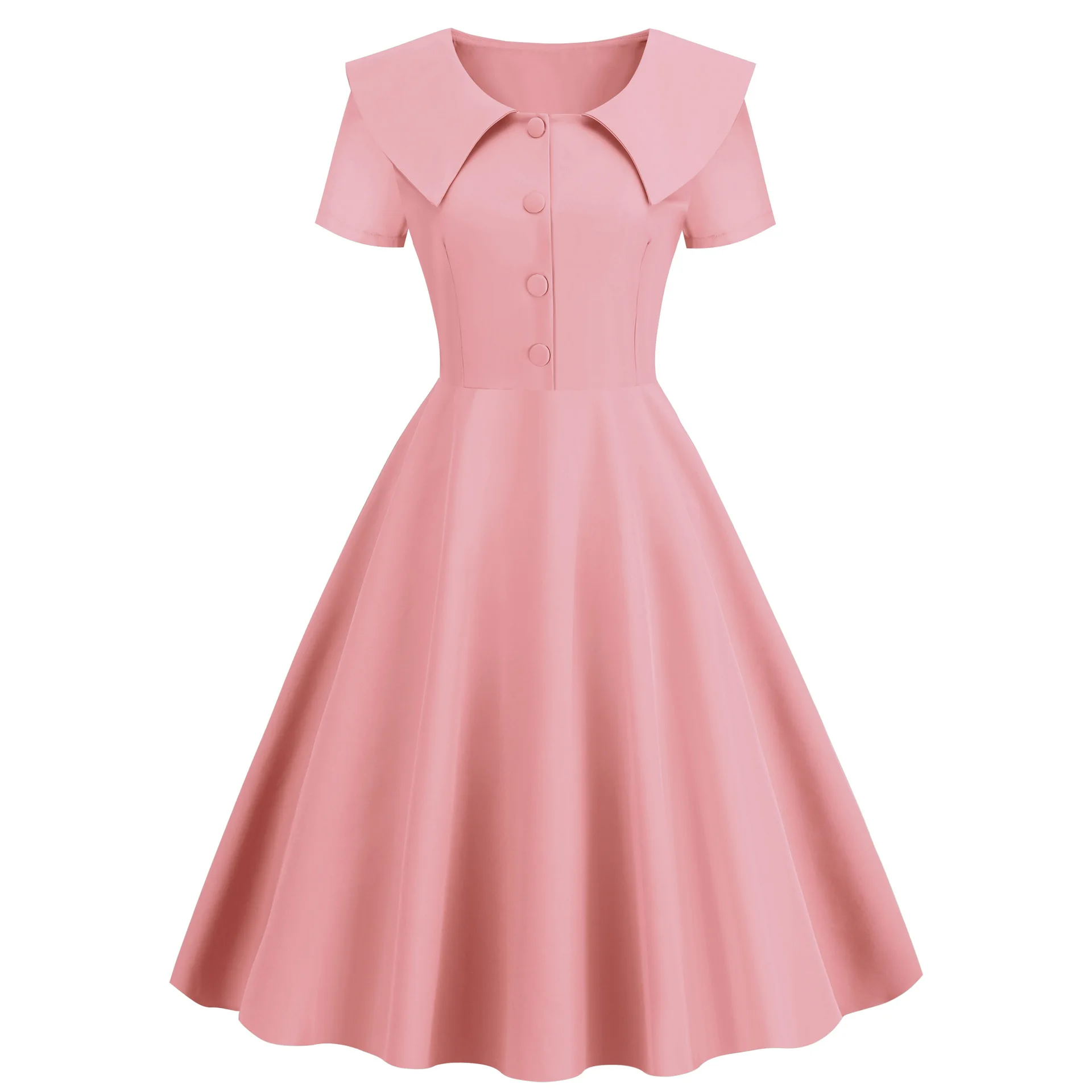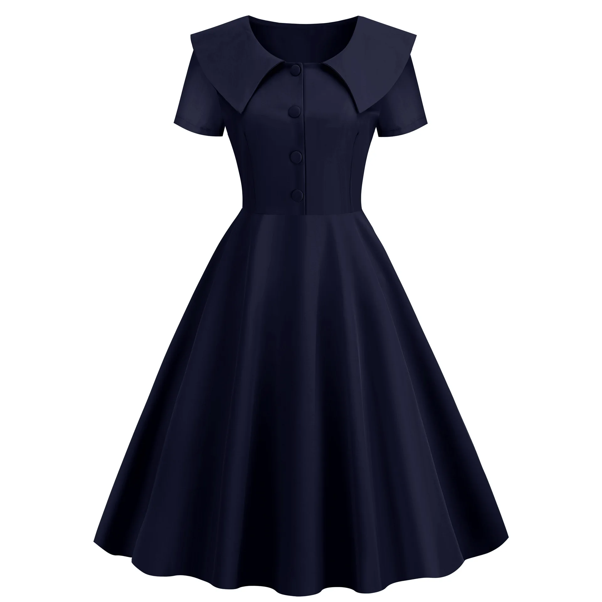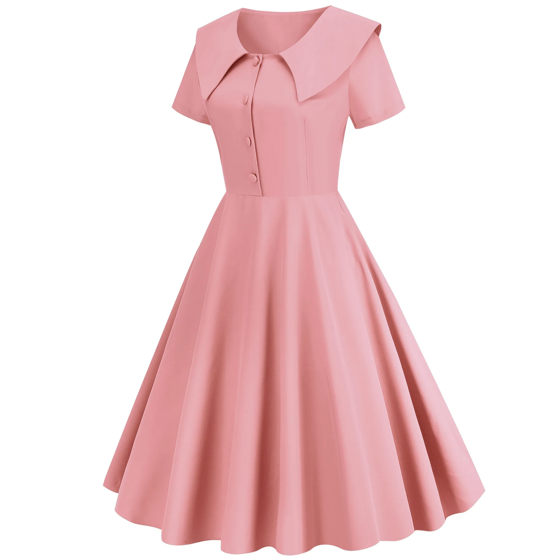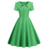 Fleepmart Solid High Waist A-Line Dresses Vintage Women Elegant Turn-Down Collar Dress Office Lady Slim Streetwear Spring Summer