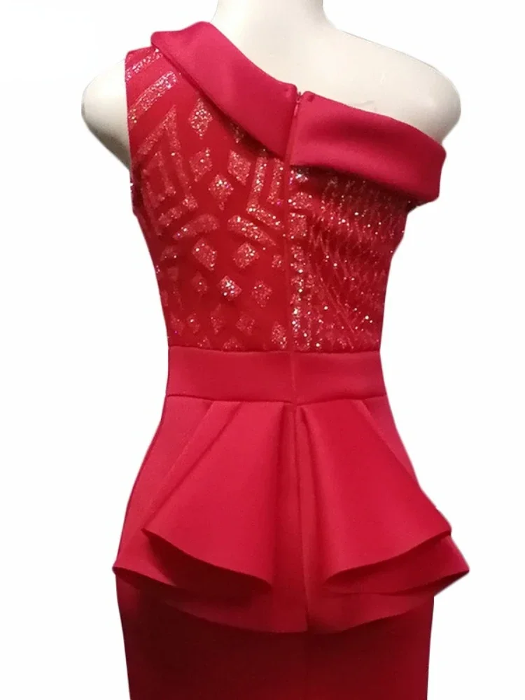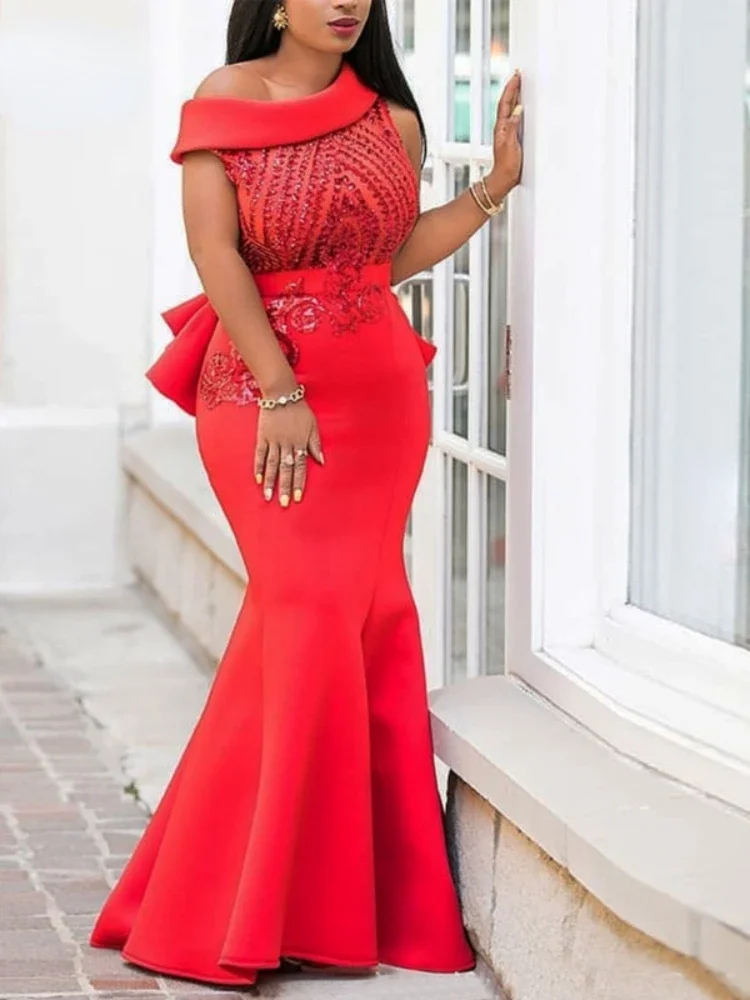 Fleepmart Women Dress Maxi Mermaid Night Sequined Party Wear Evening Red Classy Formal Dresses One Shoulder Glitter Gowns Summer Clothing