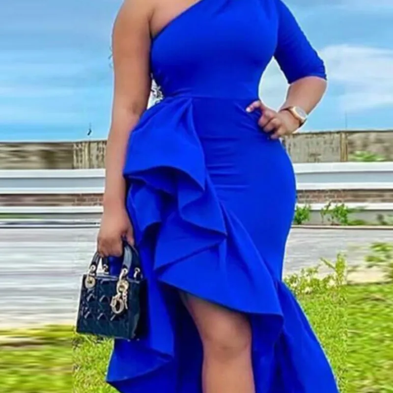 fleepmart Women Dress One Shouler Party Ruffles Party Sexy Femme Elastic Clubwear Night Out Celebrate Vestidos Female XXL
