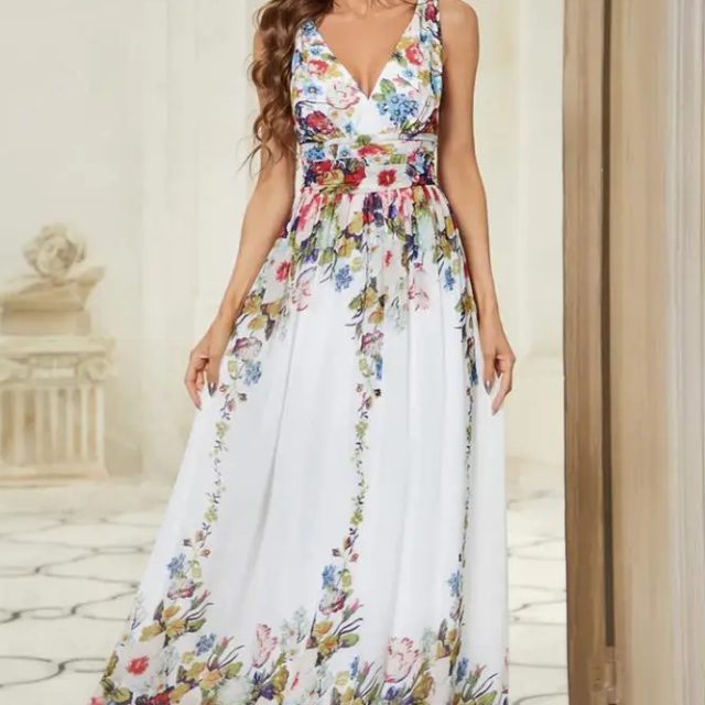 Fleepmart Women Elegant A Line Red Dress With 3D Ruffles O Neck Long SLeeve Pleated Classy Stylish Party Evening Wedding Celebration Gown