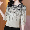 Fleepmart Women Elegant Blouses Print Round Neck Hafl Sleeve Loose Casual Elegante Satin Ladies Spring Summer Top Blusas