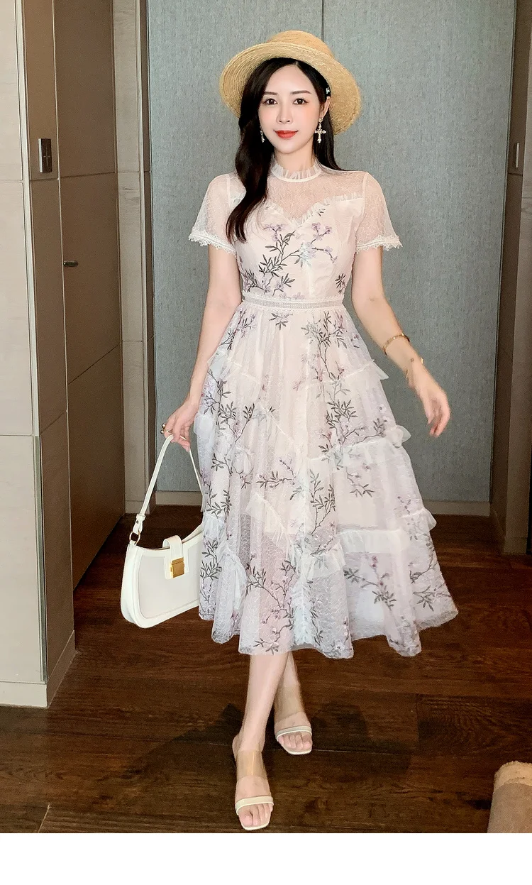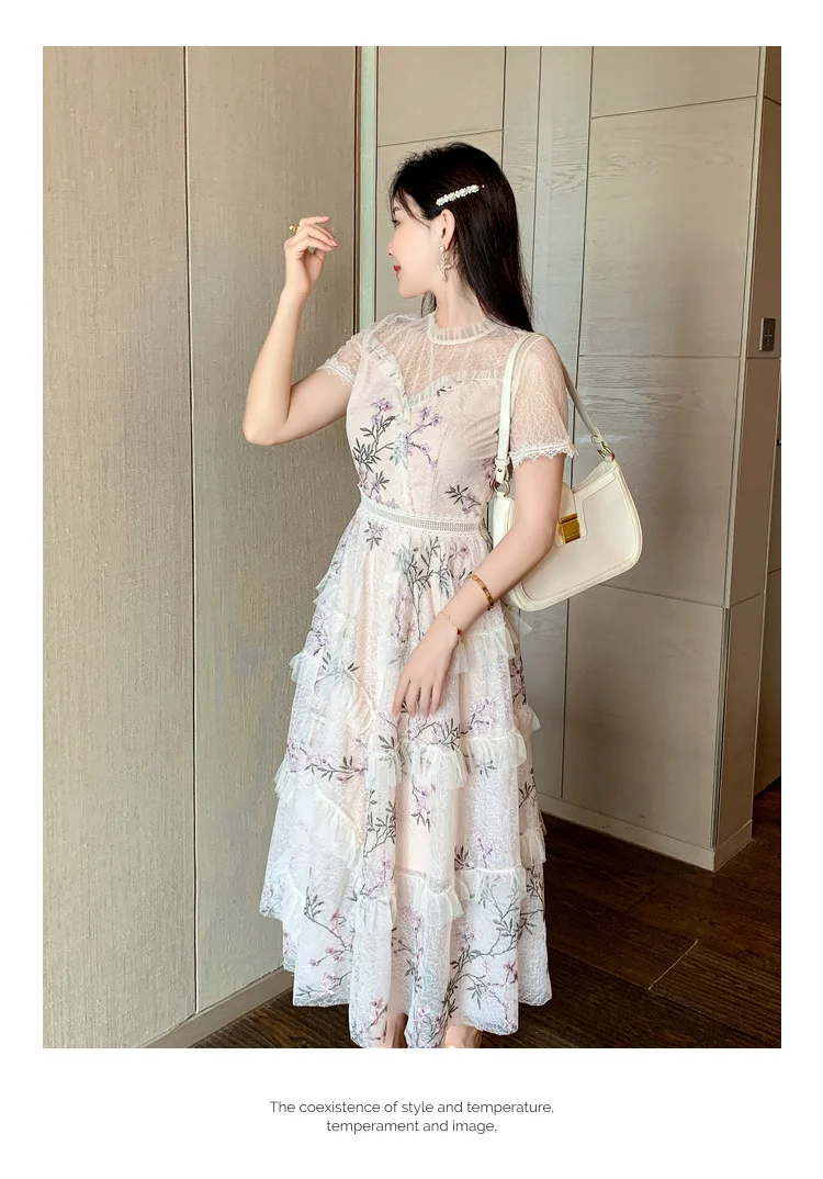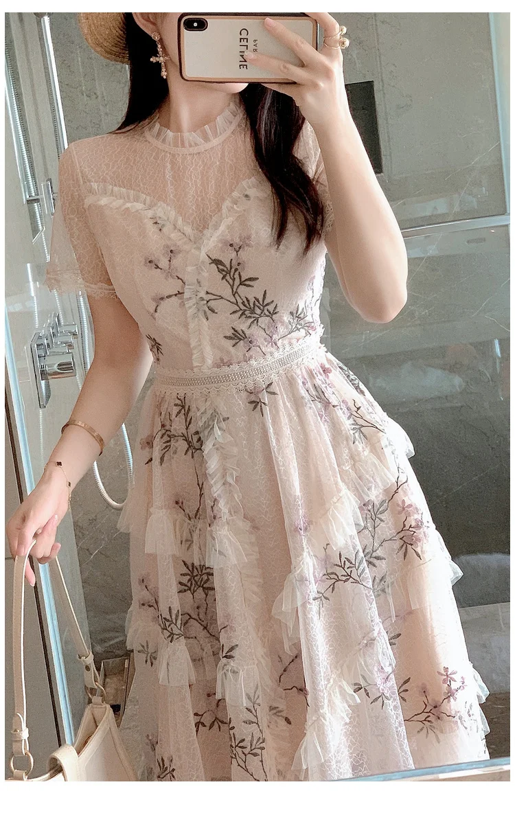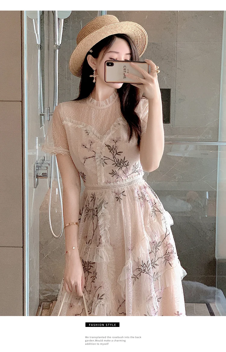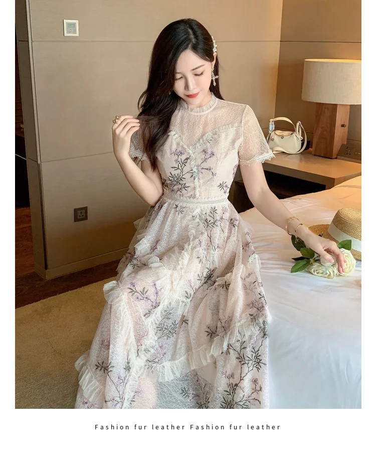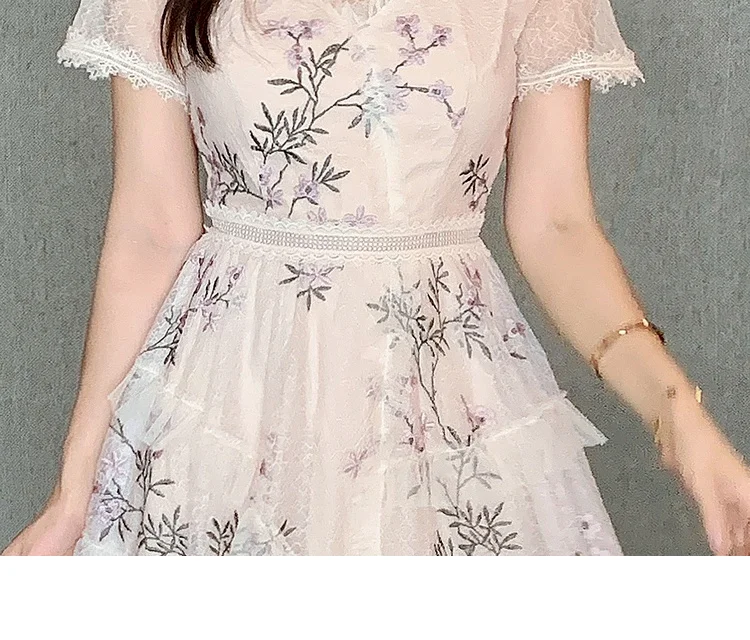 Fleepmart Women Elegant Embroidery Gauze Slim Long Dress Woman Formal Prom Party Birthday Dress for WomenFleepmart Women Elegant Embroidery Gauze Slim Long Dress Woman Formal Prom Party Birthday Dress for Women