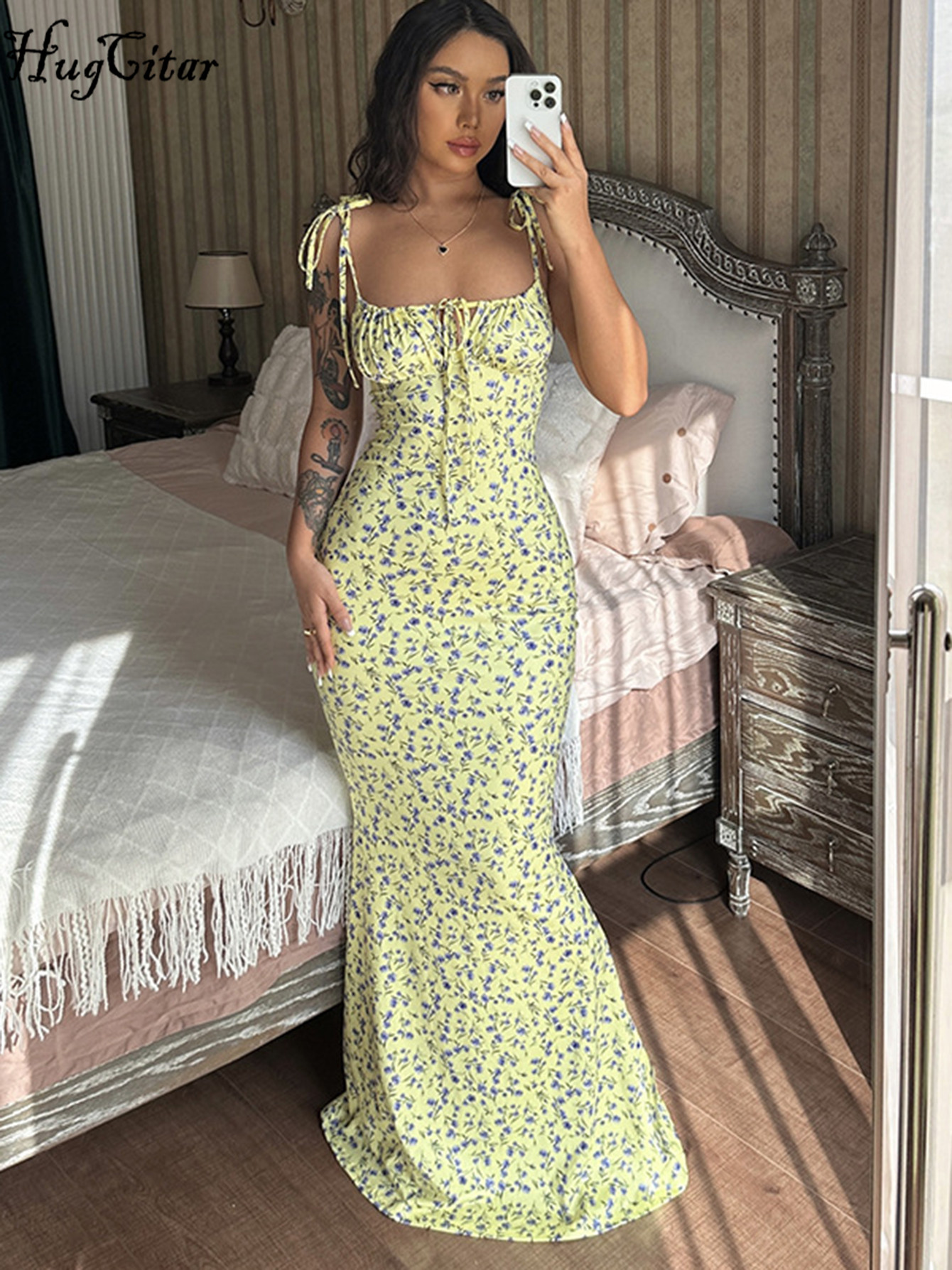 Fleepmart Women Elegant Floral Beach Vacation Bodycon Streetwear Long Dress 2024 Summer Clothes
