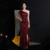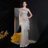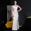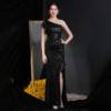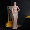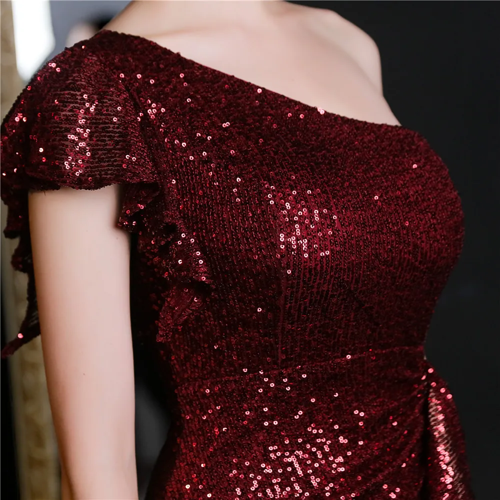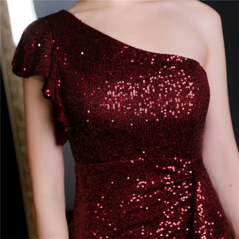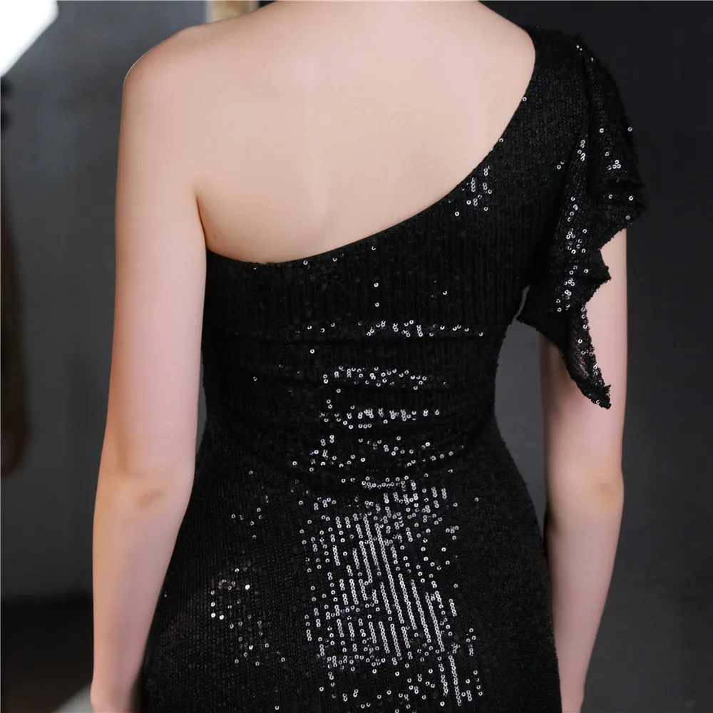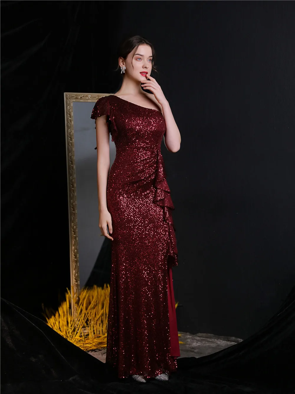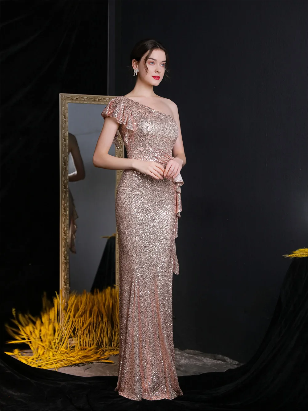 Fleepmart Women Elegant One Shoulder Ruffles Evening Dress Sexy Hight Slit Gold Sequin 2022 Women Party Maxi Dress Vestidos