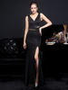 Fleepmart Women Elegant V Neck Backless Party Maxi Dress Beads Prom Dress Formal Gown