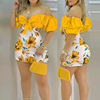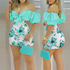 Fleepmart Women Fashion Off Shoulder Party Mini Romper Female Floral Print Playsuit Knotted Skorts Romper