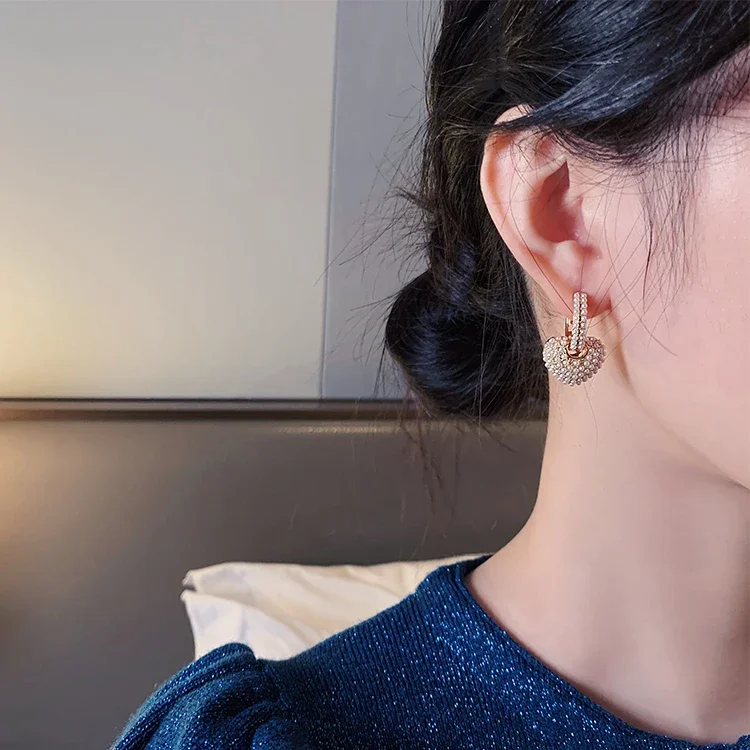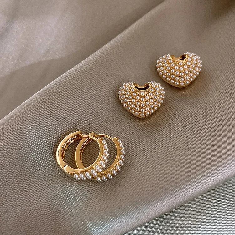 Fleepmart Women French Retro Full Set Pearl Heart Earrings High-end Simple Luxurious Temperament Exquisite and Niche Versatile Earrings
