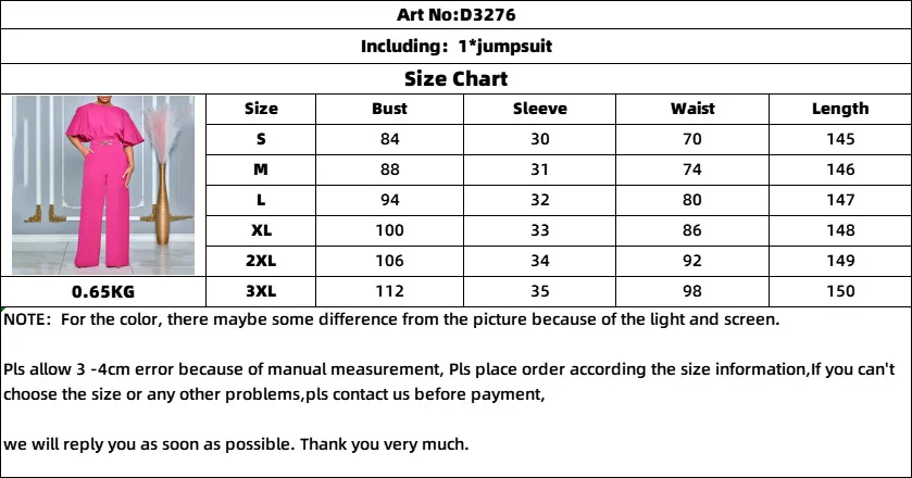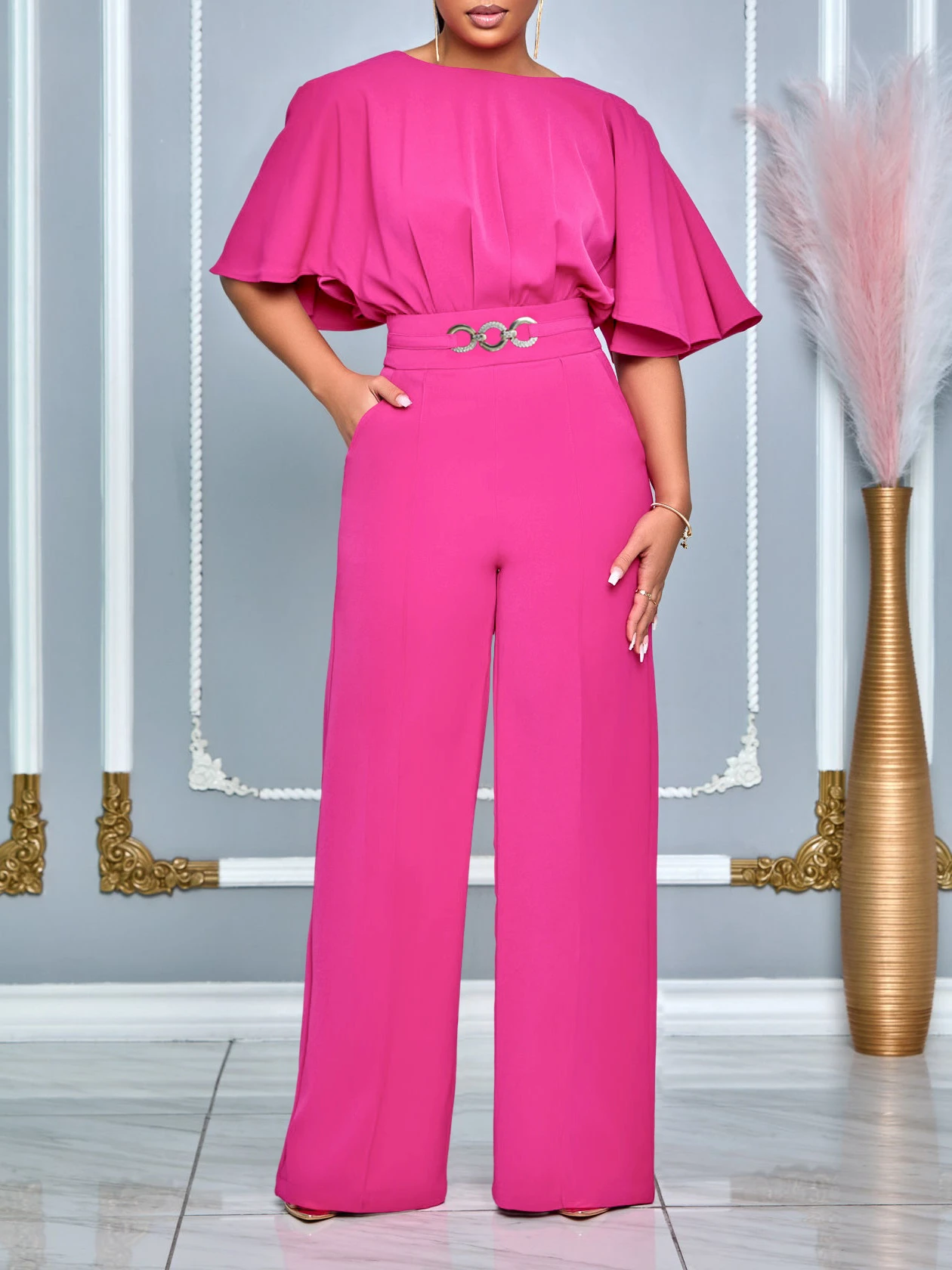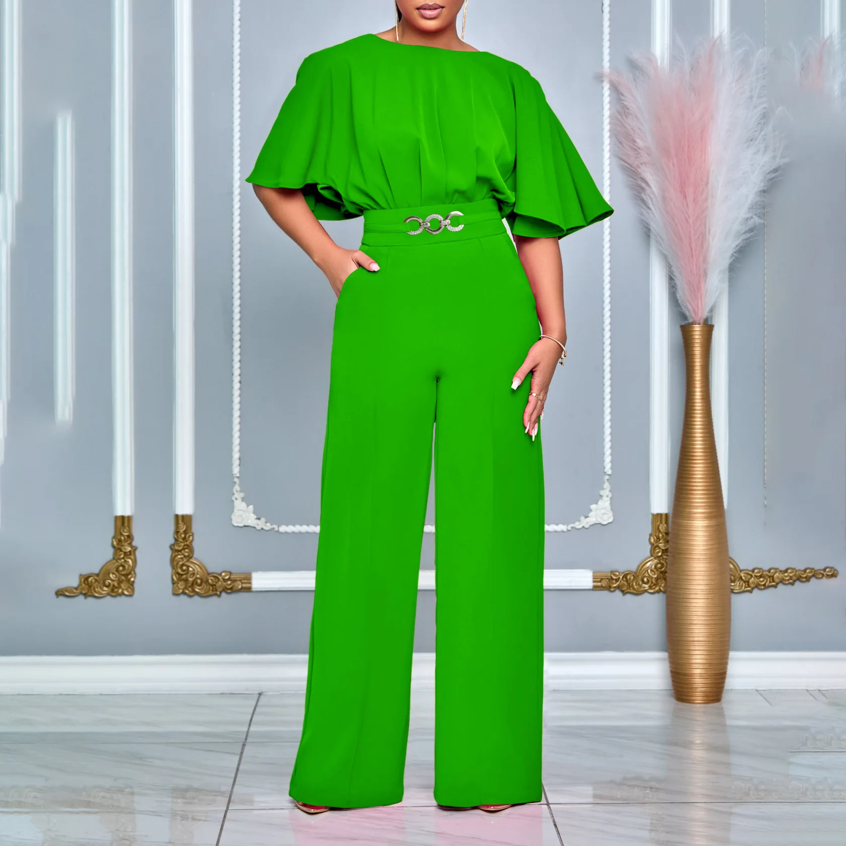 Fleepmart Women Jumpsuit Batwing Sleeves High Waist Wide Leg Female One Piece O Neck Elegant Female Fashion Party African Ladies Modest