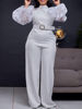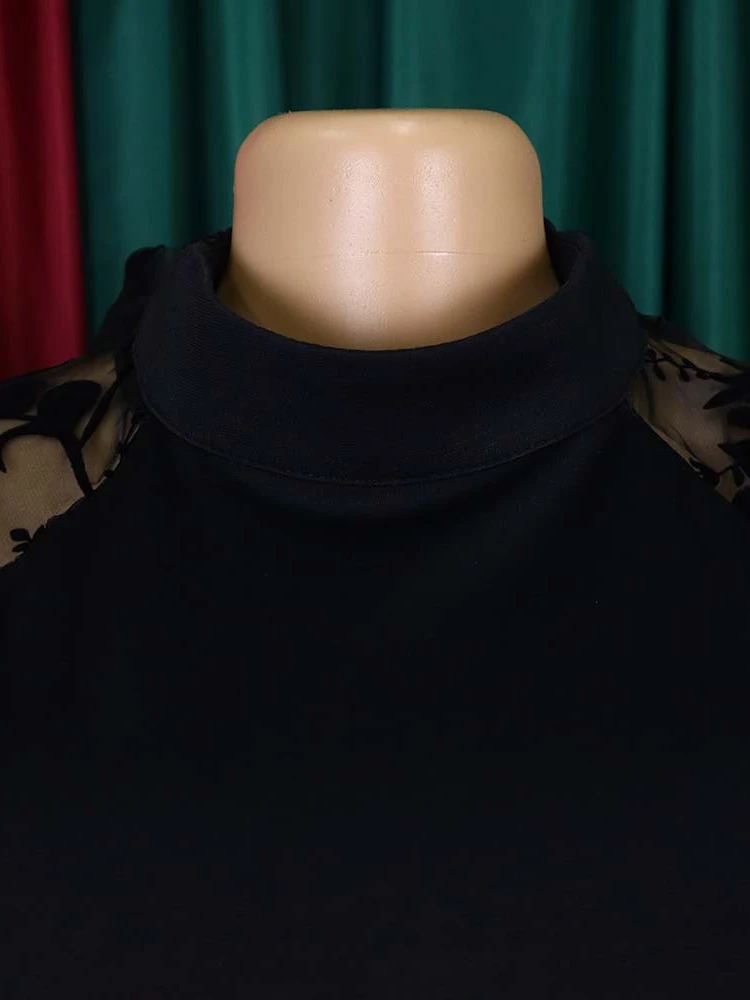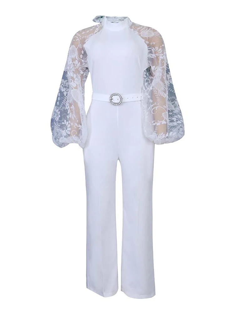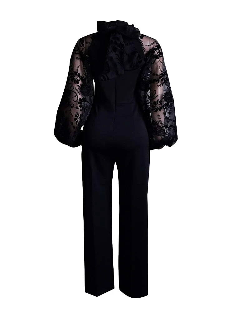 Fleepmart Women Jumpsuit Patchwork Long Lantern Sleeves See Through High Collar One Piece Rompers African Female Black White Elegant New