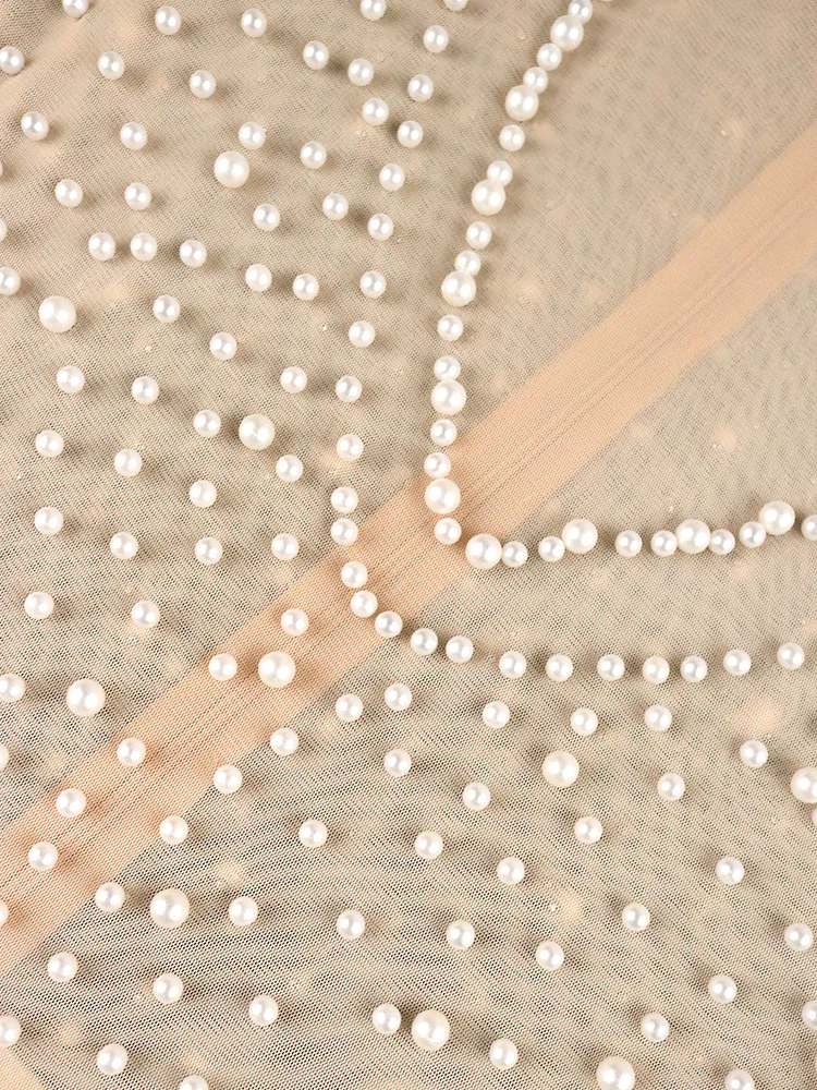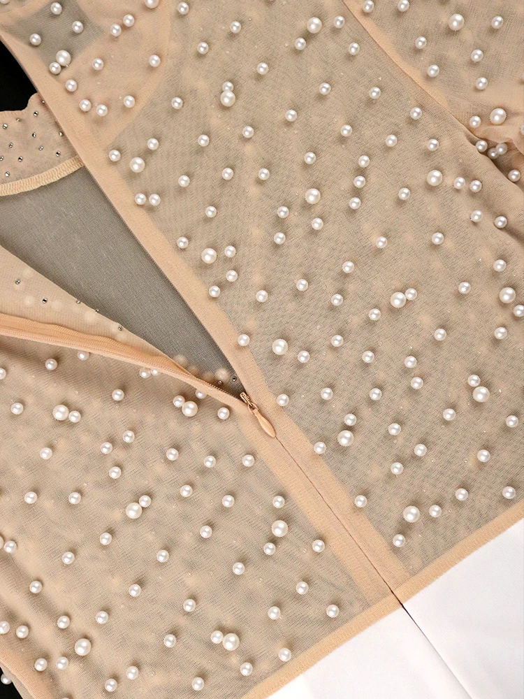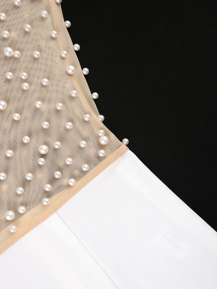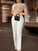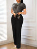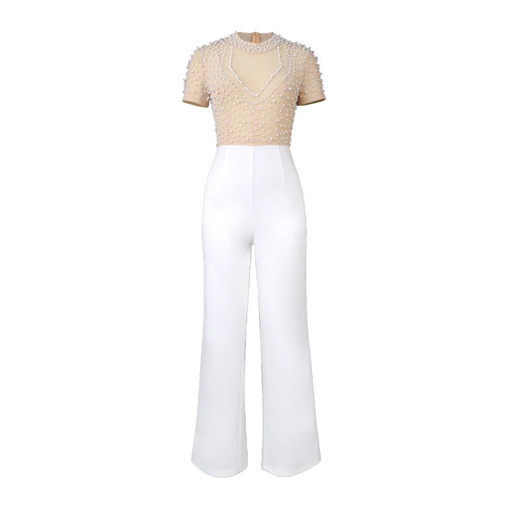 Fleepmart Women Jumpsuit See Through Tops Beaded Half High Collar Short Sleeve Sexy High Waist Wide Leg Classy Party One Piece Romper New