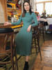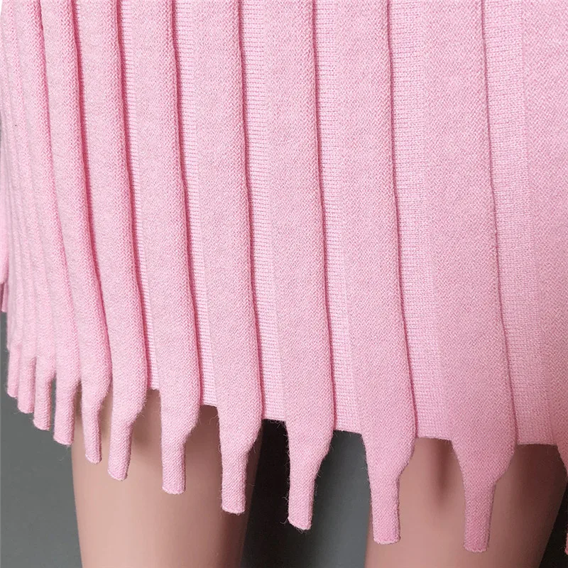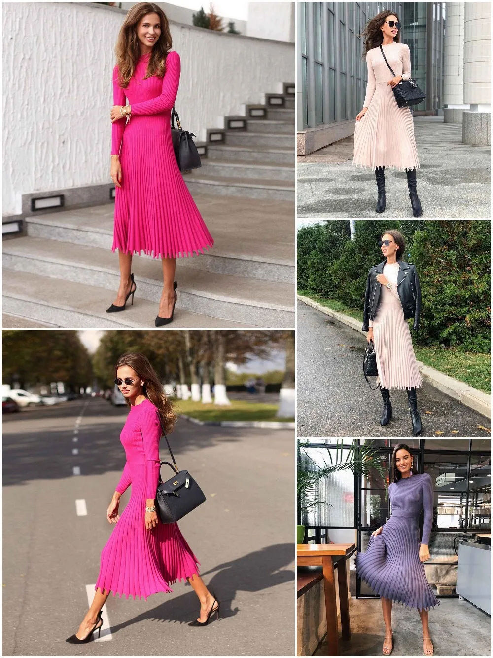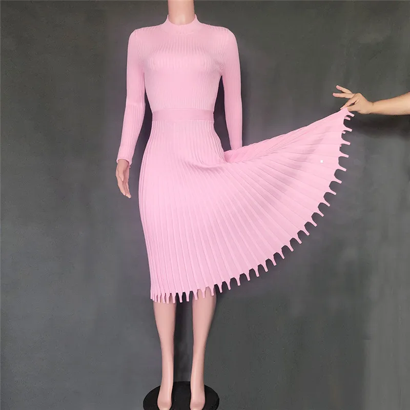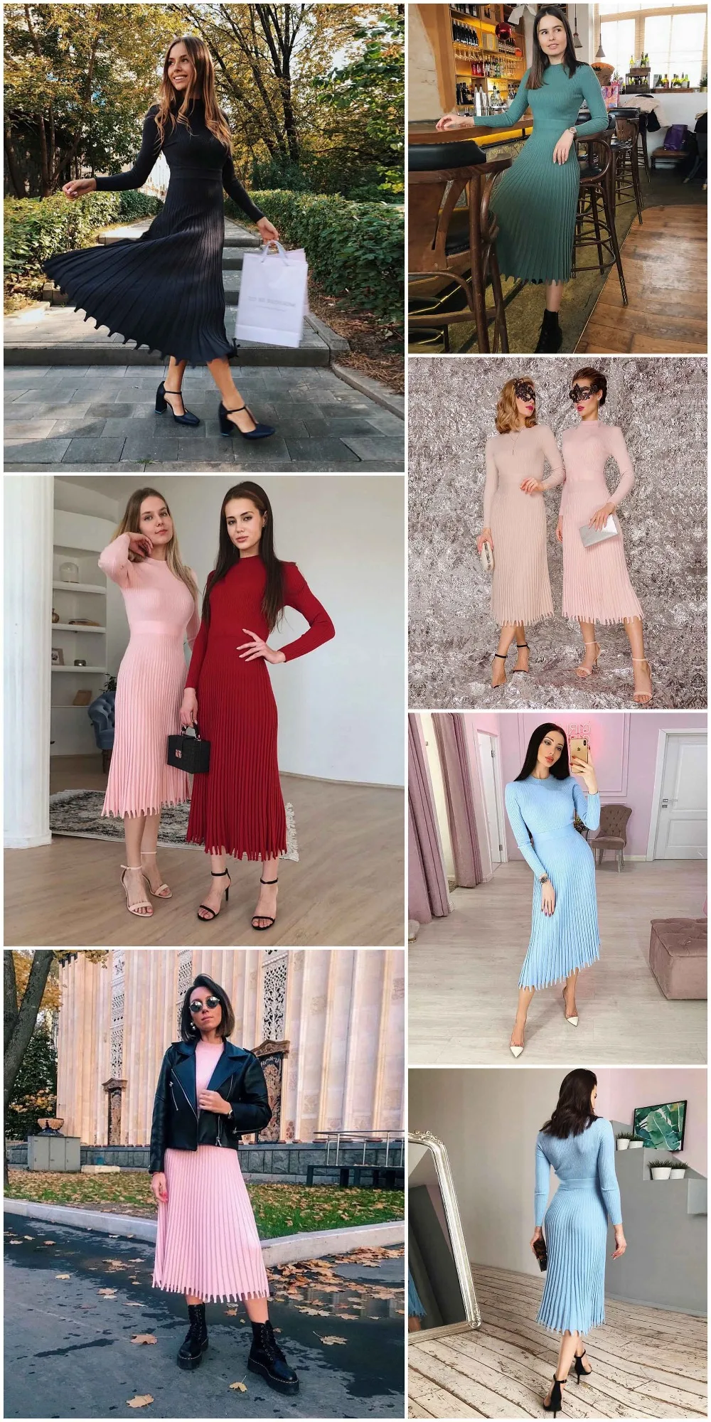 Fleepmart Women Knitted Long Dress Ribbed Elegant Midi Bodycon Sweater Dress Official Ladies Bandage Pleated Dresses Streetweear