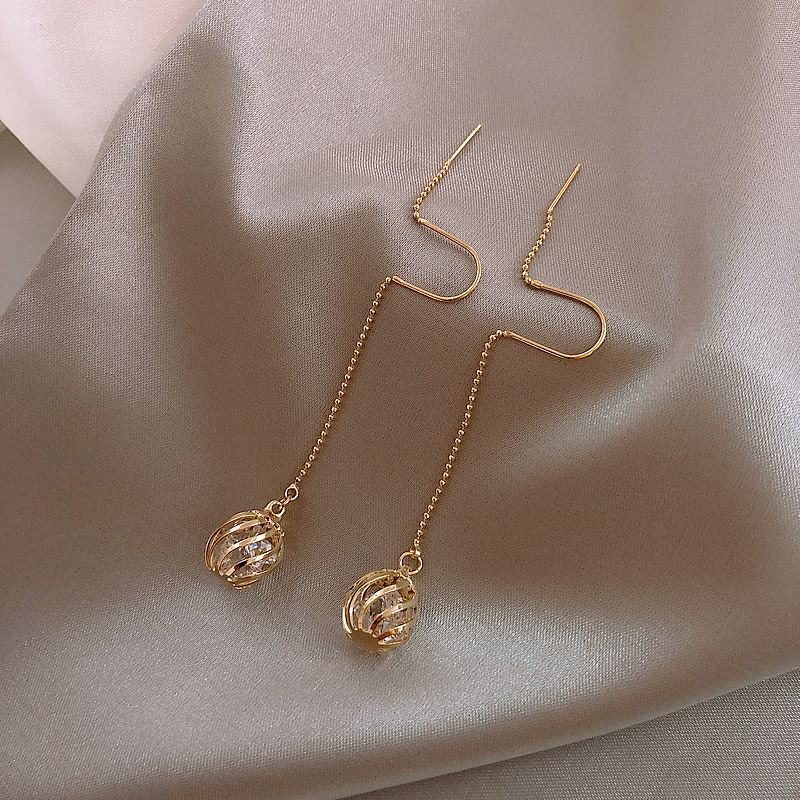 Fleepmart Women Korean Long tassels metal hollow ball design fine crystal Drop earrings 2021 Classic style New earrings Jewelry![]()