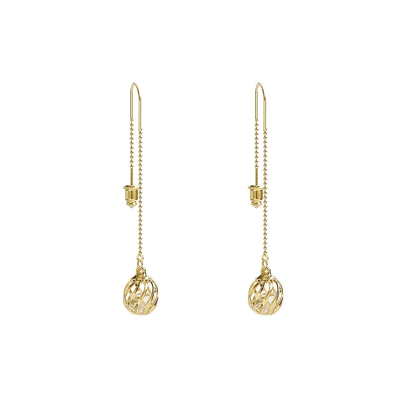 Fleepmart Women Korean Long tassels metal hollow ball design fine crystal Drop earrings 2021 Classic style New earrings Jewelry![]()