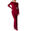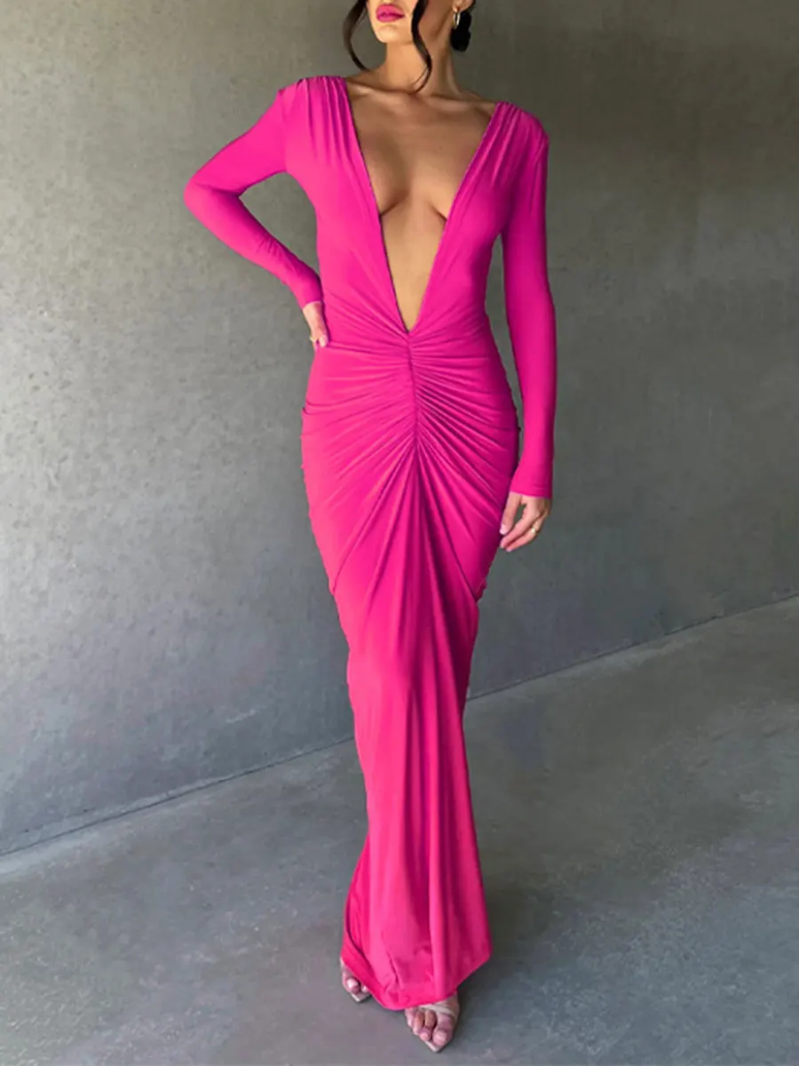 Fleepmart Women Long Bodycon Dress Solid Color Deep V-Neck Ruched Long Sleeve Dress Spring Fall Evening Party Dress